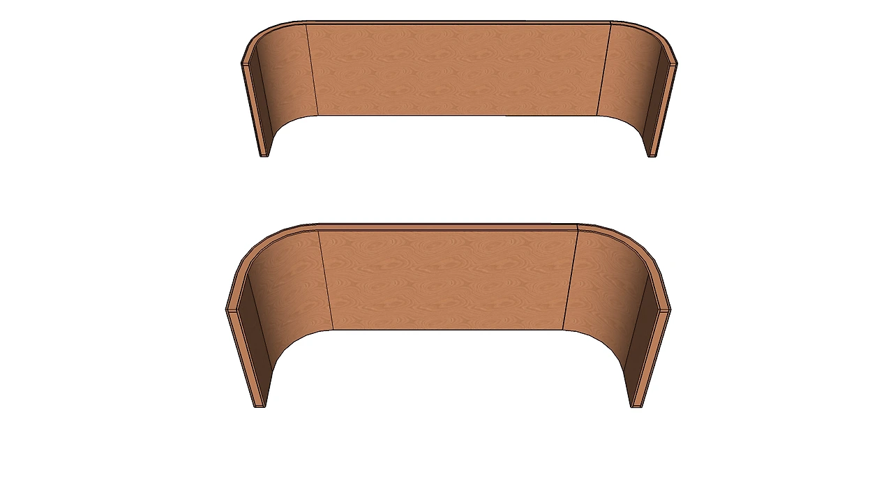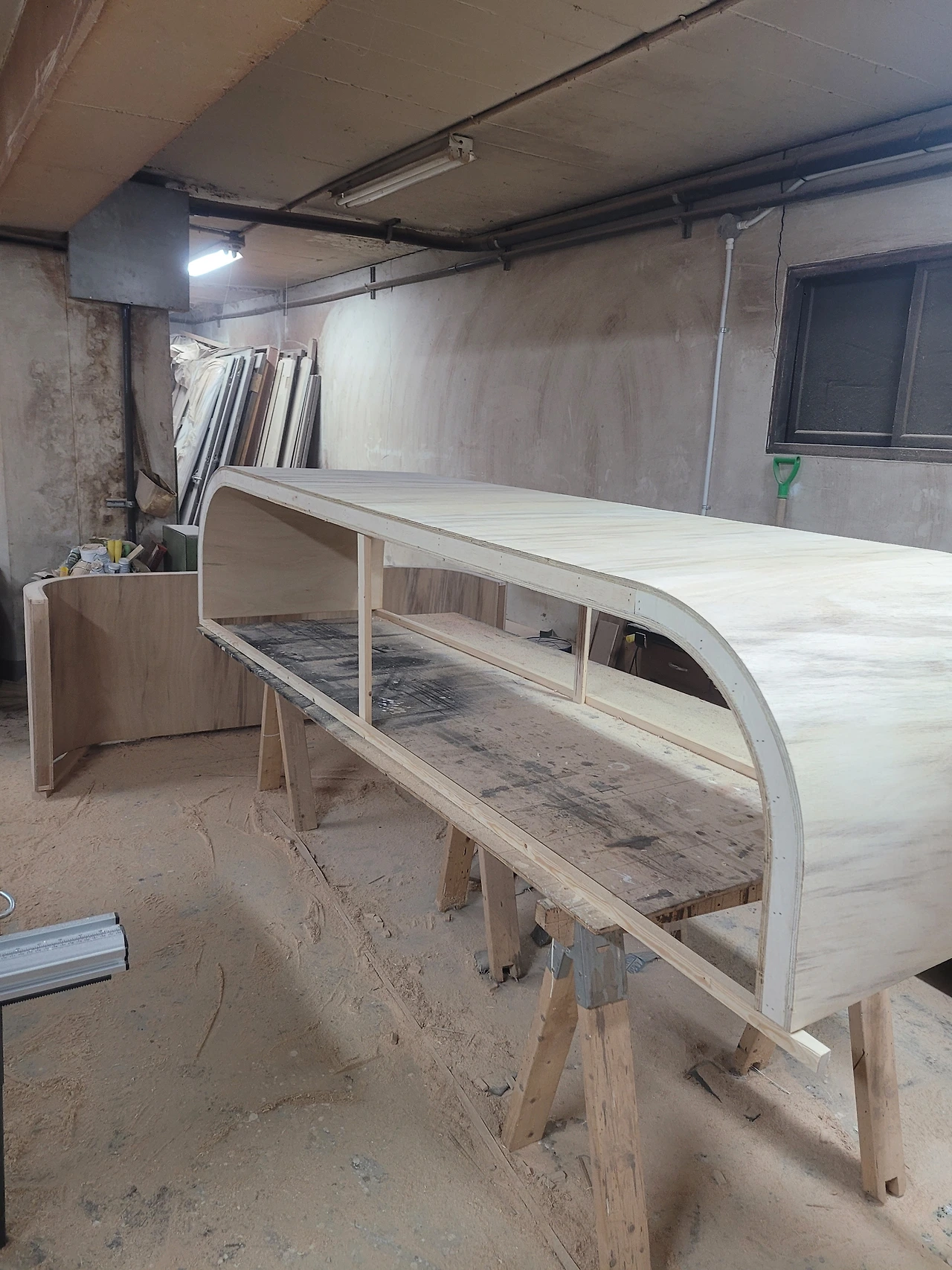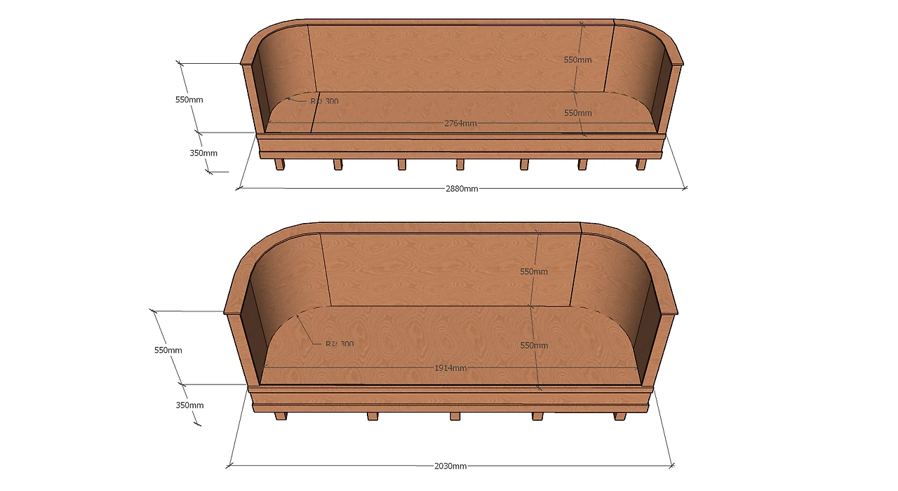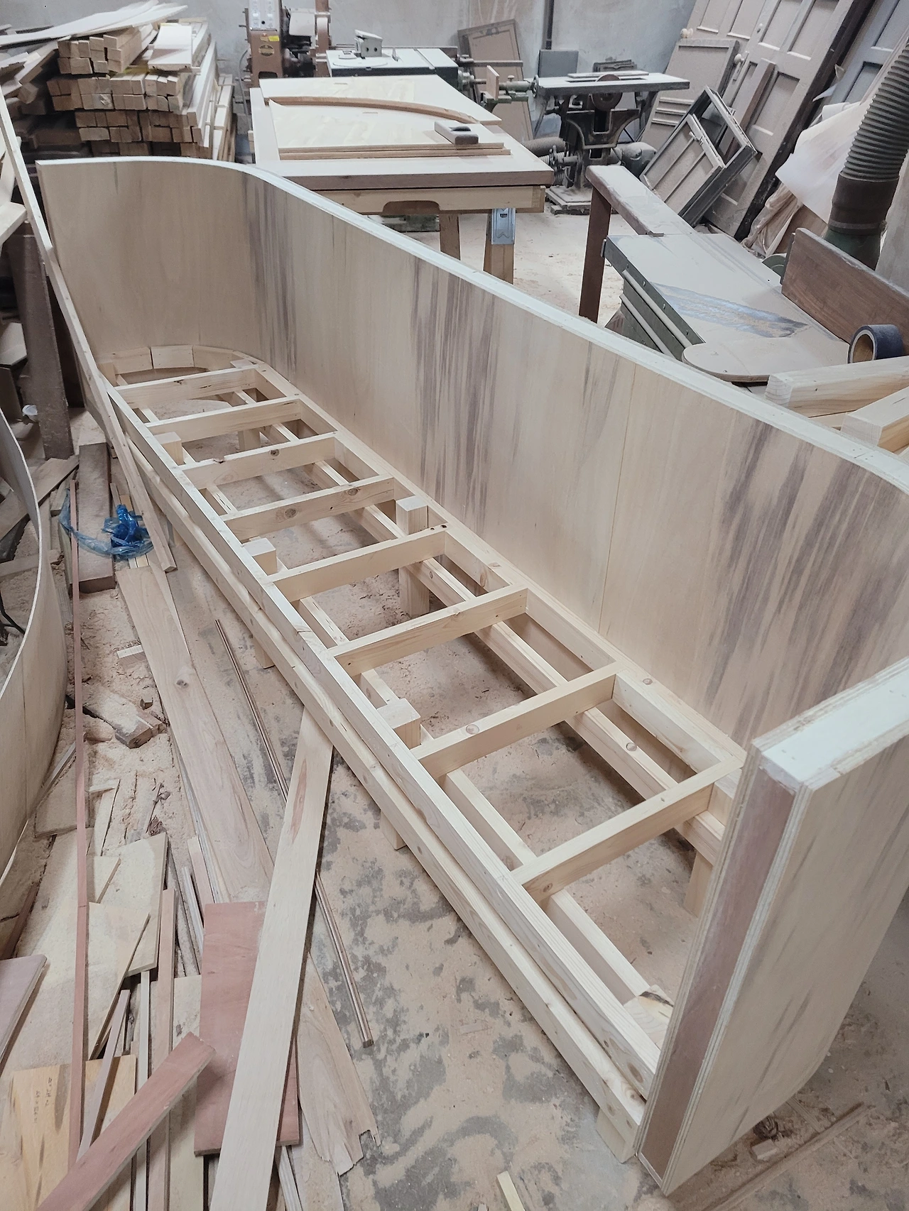 코너 골조 라운드 작업 후 등받이 오징어합판 양면 세 겹