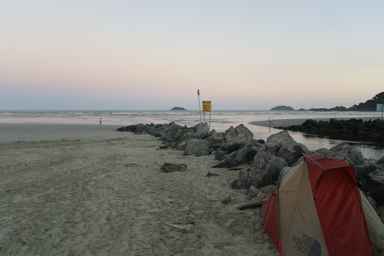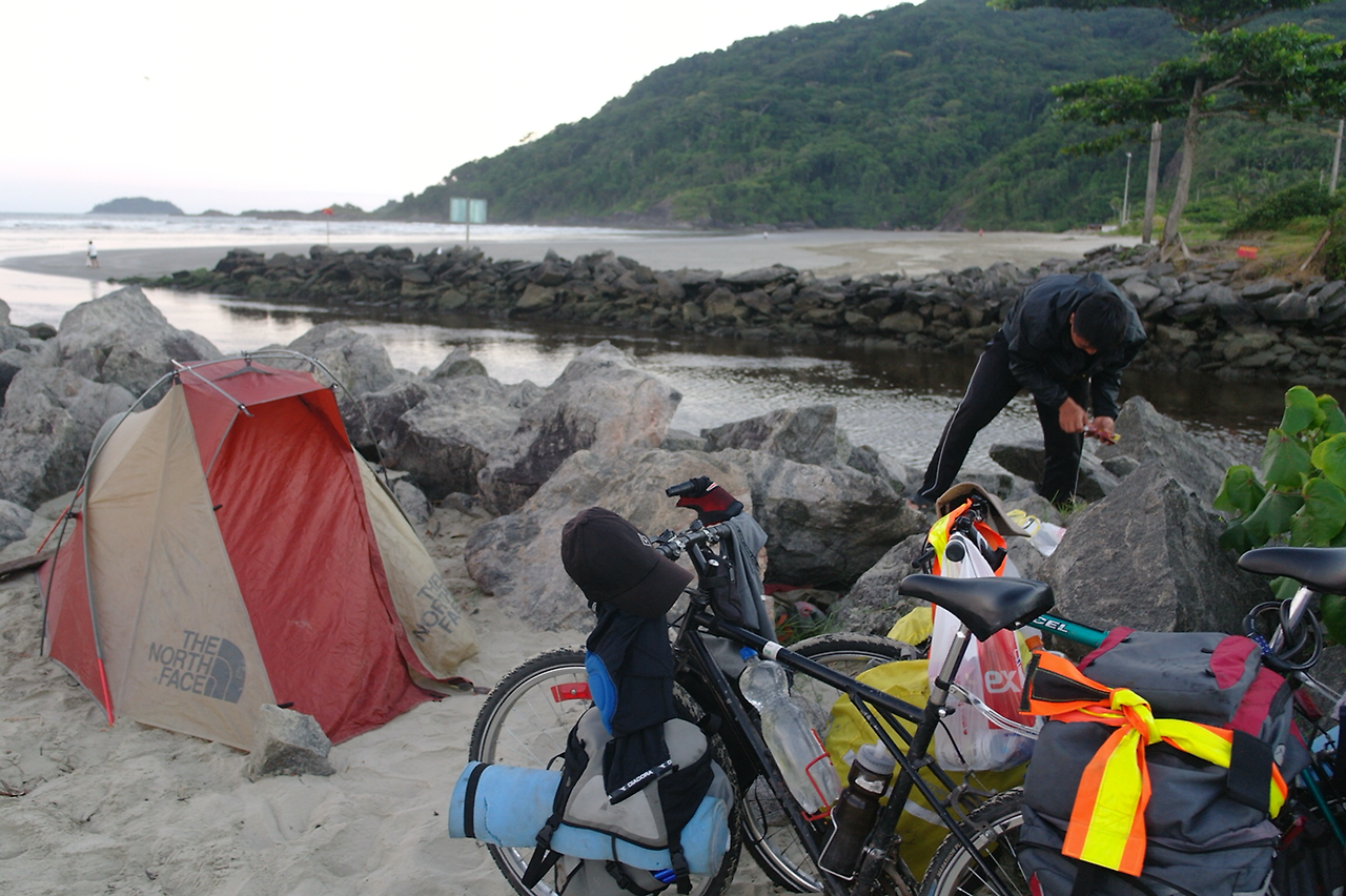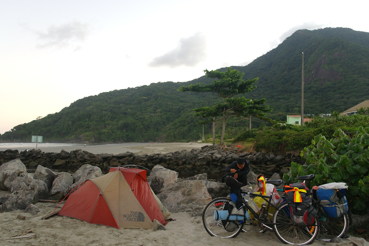 다운타운 대형마트에 들려 치킨 등 안주거리와 맥주를 여섯 캔을 샀다. 바닷가에 텐트를 치고 치맥을 하는데 두 캔 만에 취기가 올라왔다. 안 마셔 버릇하니 술이 잘 안 들어간다. 상파울로 까지는 조금 돌아가긴 하지만, 바닷가로 가는 길을 선택했다.