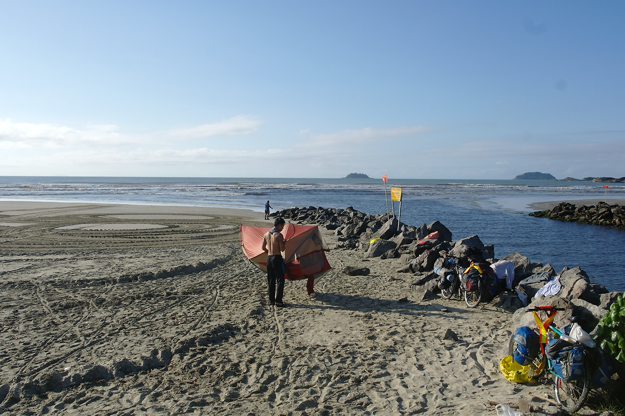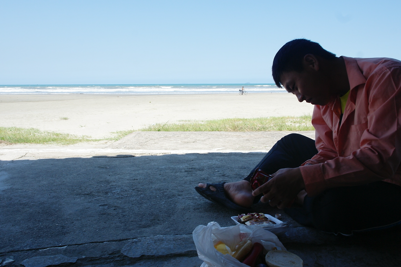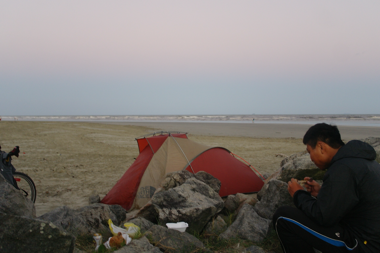 늦잠을 자고 싶었지만 여섯 시가 넘어 눈이 떠졌다. 선탠을 했다. 30분만. 어제 사놓은 빵으로 아침을 해결하고 해변가를 달렸다. 계속 우측에 바다를 끼며 달린다. 생각보다 모레 사장이 단단해서 바퀴도 빠지지 않고 즐겁게 라이딩을 한다.