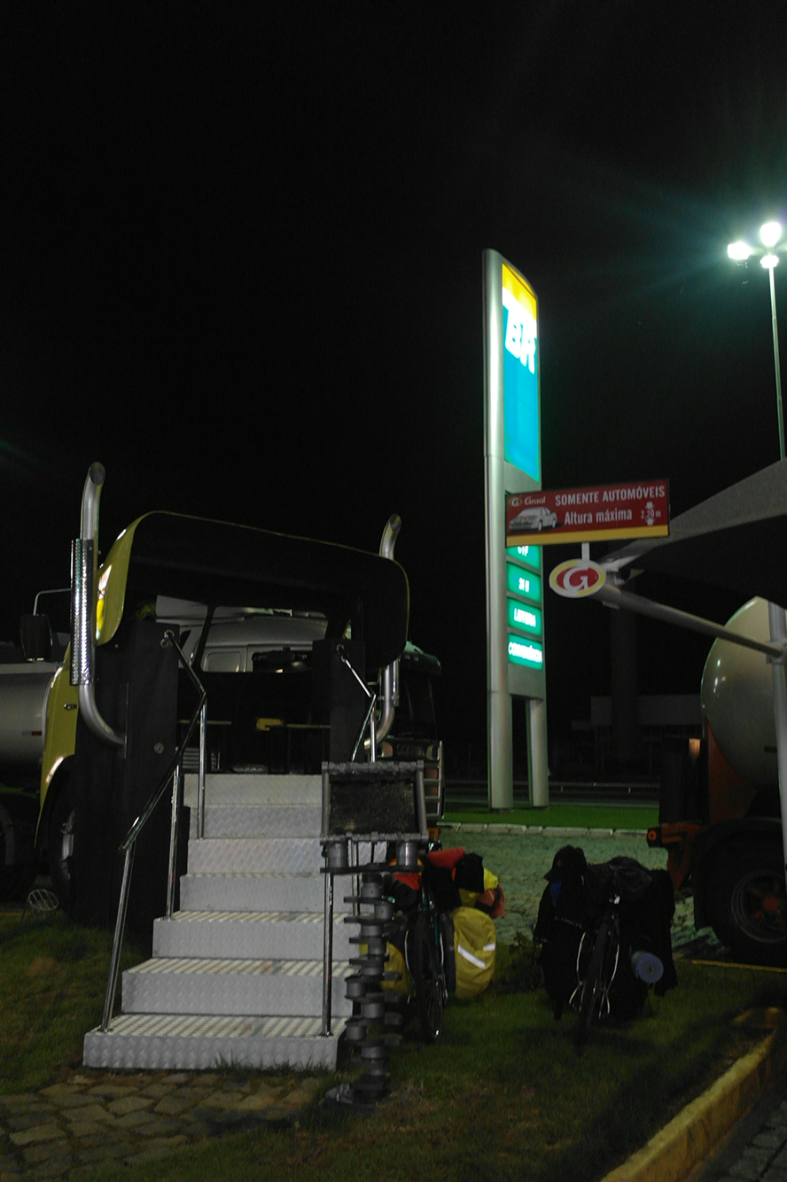 중간중간 앞 기어가 말썽이다. 조금만 더 버텨줘 제발. 톨게이트 같은 곳에서 잠시 휴식을 취하며 물을 보충했고, 다음 휴게소에서 저녁을 먹었다. 살가도만 먹으려 했는데, 뷔페가 너무 맛있게 진열되어 있었다. 가격은 4.19 real/100g. 둘이서 65 레알이 나왔다. 생선 맛이 일품이었다. 신용 카드로 결제. 아, 진짜 카드값 얼마나 나오려나. 다음 휴게소에도 대형 뷔페가 있었고 값은 조금 저렴했다. 브라질 역시, 장거리 운전기사들을 잡기 위한 식당, 샤워 시설, 차가운 물, 당구장 등 편의시설이 정말 잘 되어 있었다. 물가도 엄청 비싸다. 주차장 뒤편 구석에서 캠핑을 한다.