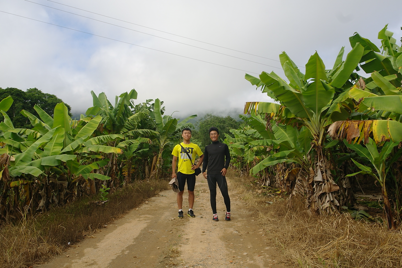 116번에서 55번 도로로 갈아탔다. 길가에 푸른 산들이 많았는데 자세히 보니 바나나였다. 산이 모두 바나나다. 구경도 할 겸 안으로 들어갔다. 노란 바 나나는 하나도 없었다. 진호는 바나나는 원래 초록색으로 꽉 찼을 때 때어내고, 운송 과정에서 노랗게 물든다고 했다. 나름 튼실한 녀석들을 따서 가방에 넣었다. 빨리 익어라 ᄒᄒ