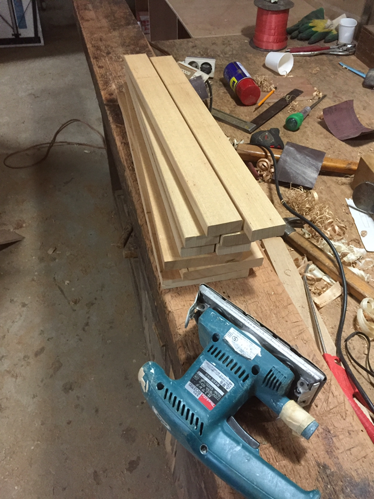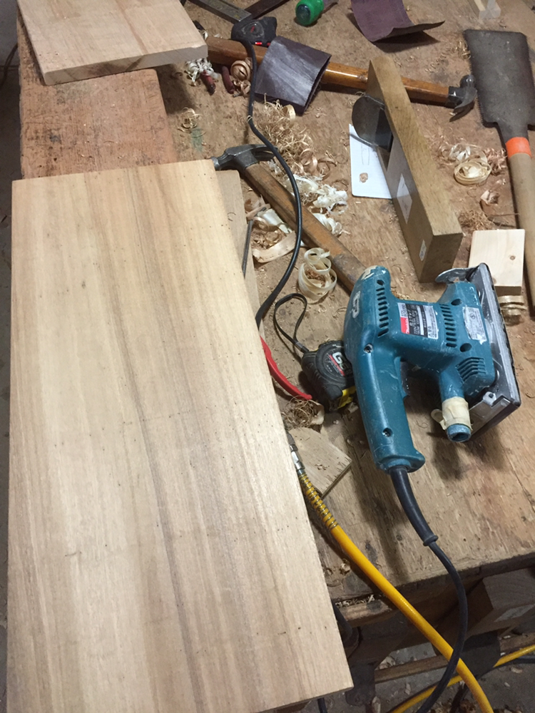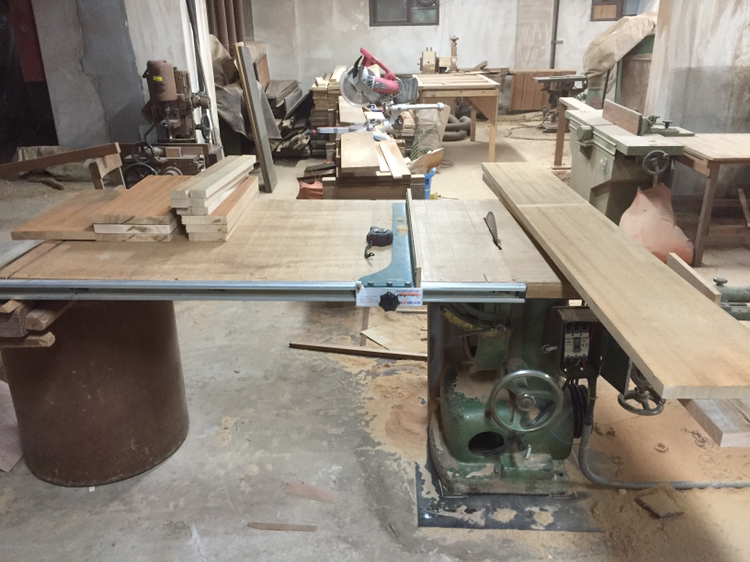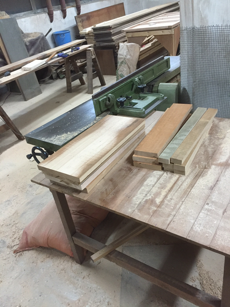 자재를 골라서 재단을 시작한다. 수압대패로와 자동대패로 면을 한 번 잡아주고, 손대패로 다시 한 번 면을 잡아줬다.