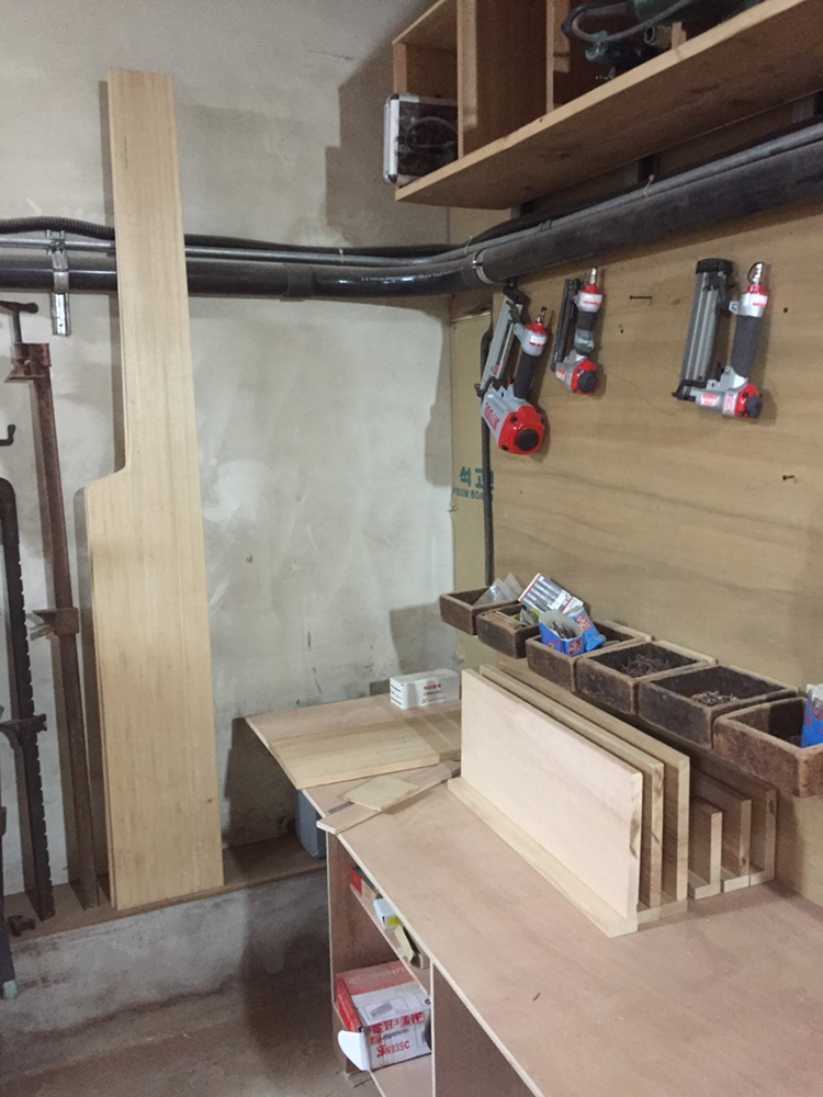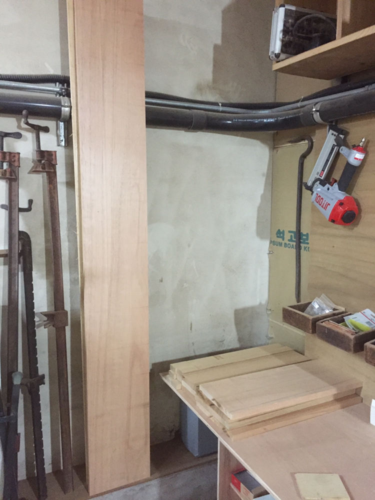 책장선반을 다보에 올려놓을지, 목심을 박을지 고민하다가 그냥 피스로 조립~!