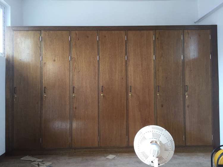 장 전면부 황토칠 후 니스마감 2회 / 문 손잡이 및 잠금장치 설치