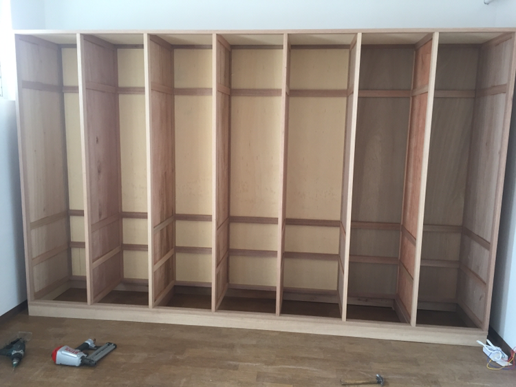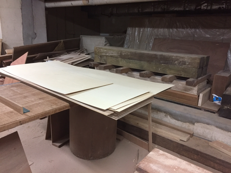 문은 12t 합판을 50mm로 켜서 상을 만들어주고 양면에 5t 합판으로 본드칠 후 무거운 물건을 이용해 골고루 눌러준다.