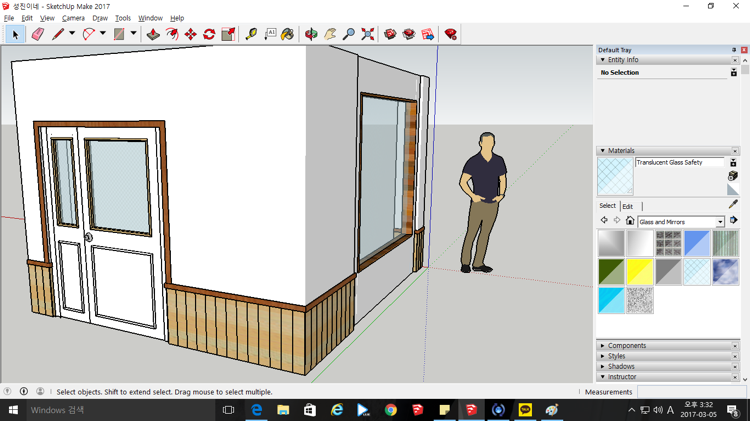 여기에 여닫이 양문형(식당이라서 슬라이딩을 추천했지만 여닫이 하고 싶댄다.)
