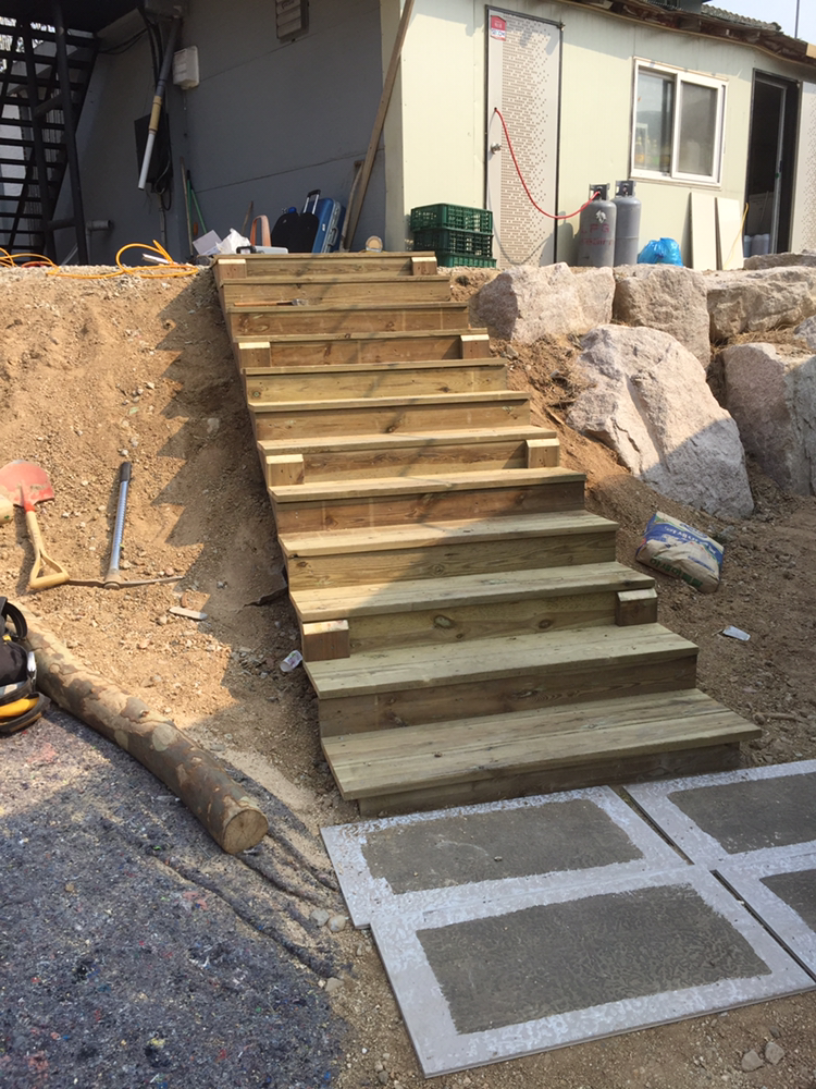 포스트 자리 파고, 다지고, 포스트 박고, 몰탈 붓고, 다지고. 허리 끊어질뻔. 이래서 데모도가 필요하구나...
