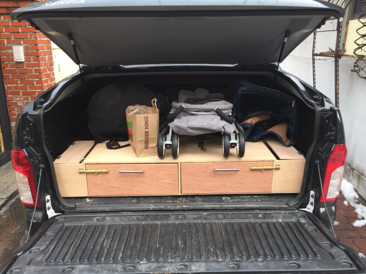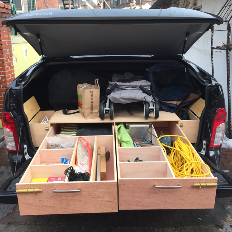 적재함이 너무 지저분해서 실측을 못하고 인터넷을 뒤지다가 나온 사이즈로 만들었는데 안들어가면 어쩌나 걱정이다 ㅜㅜ