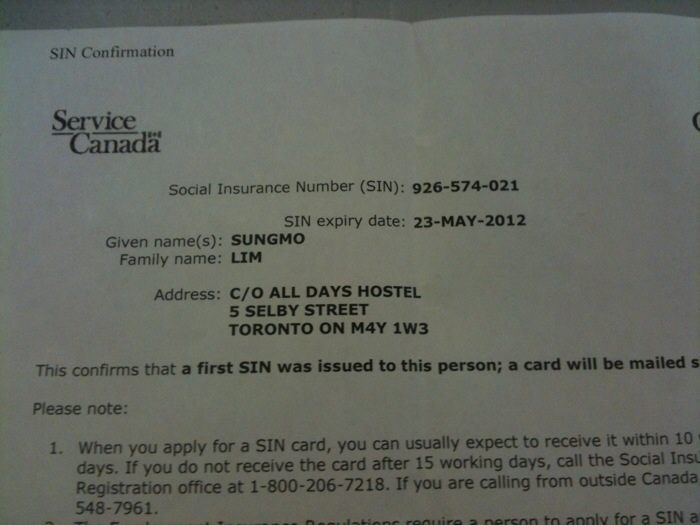 SIN 이 있어야 캐나다에서 일을 할 수가 있다