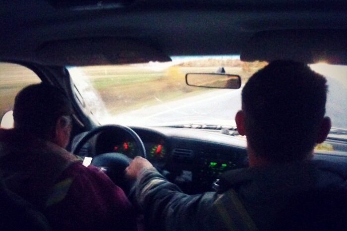 죠가 여자친구랑 문자를 하는동안 조단이 대신 운전대를 잡아준다