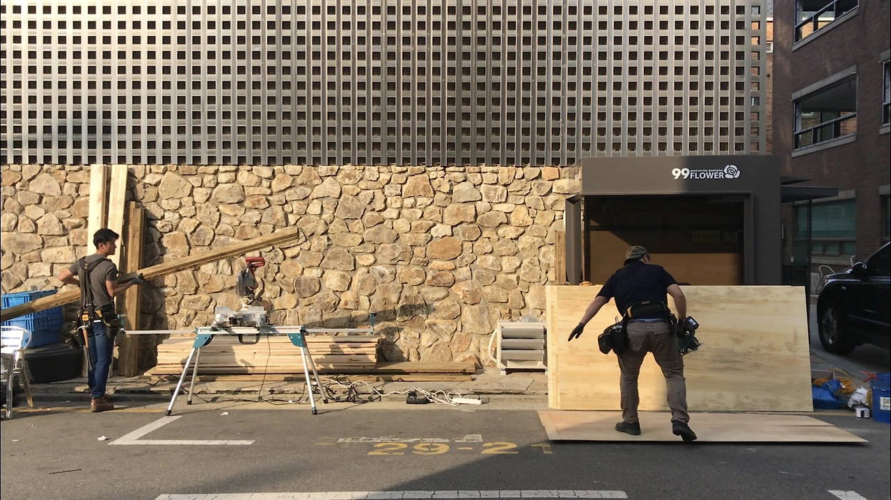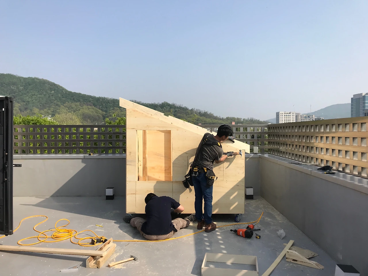 크기가 작아서 리프트차량 안 부르고 1층에서 전체 재단 후 엘리베이터 및 옥상 까대기 후 조립
