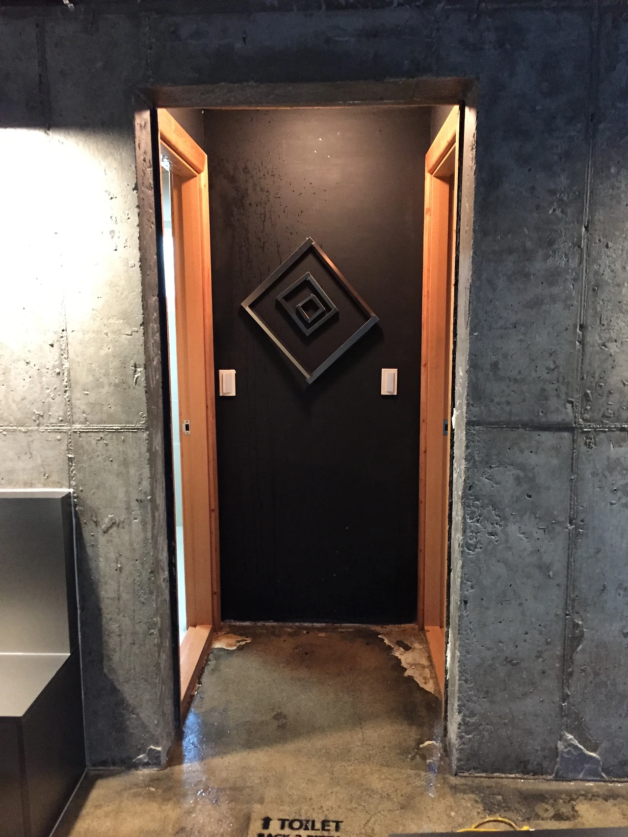 라왕각재에 합판. 알루미늄체크판을 앞판 덮방으로 시공하려 했는데, 역시 출고 지연으로 일단은 백골상태로 설치했다. 설치를 끝내고 나니 문은 당기는 방향만 사용한다고 한다. ㅎㅎ 개인적으론 문이 커서 조금 아쉽다.