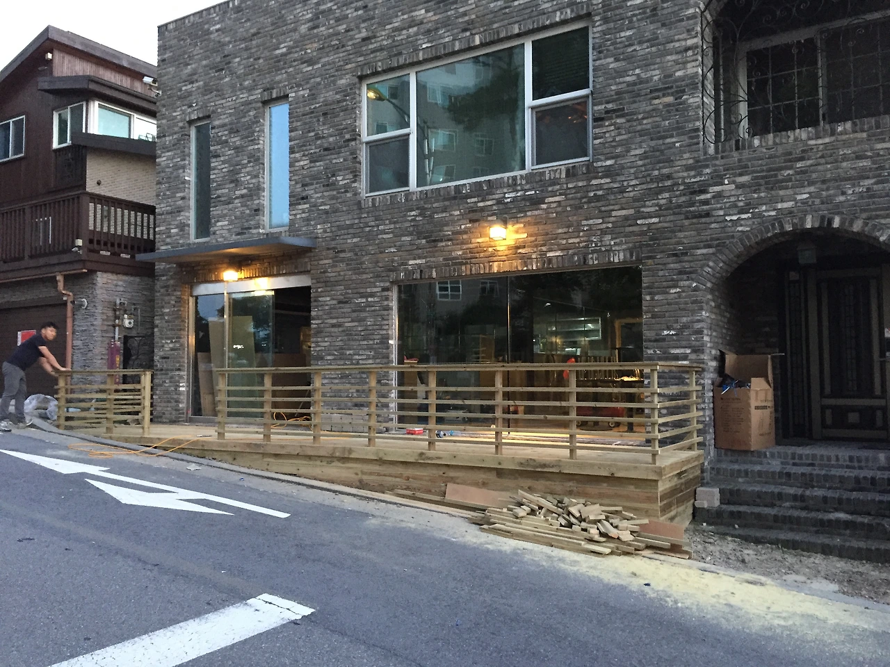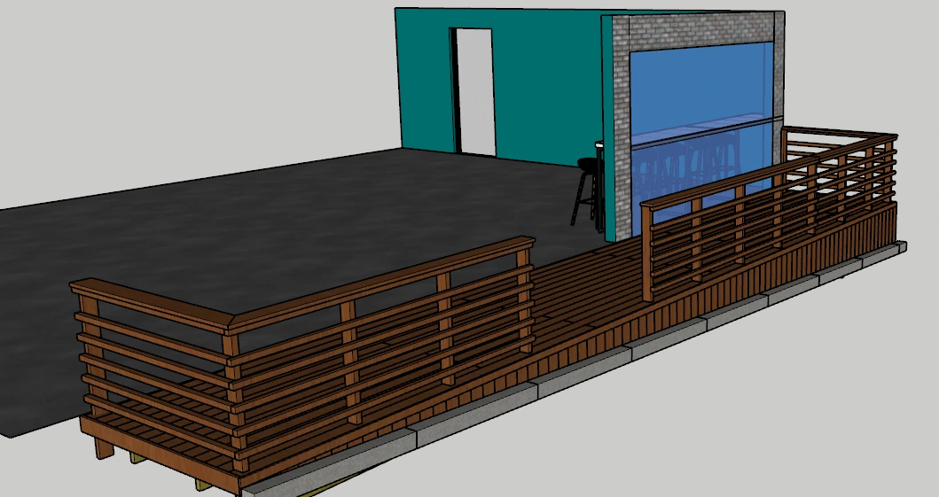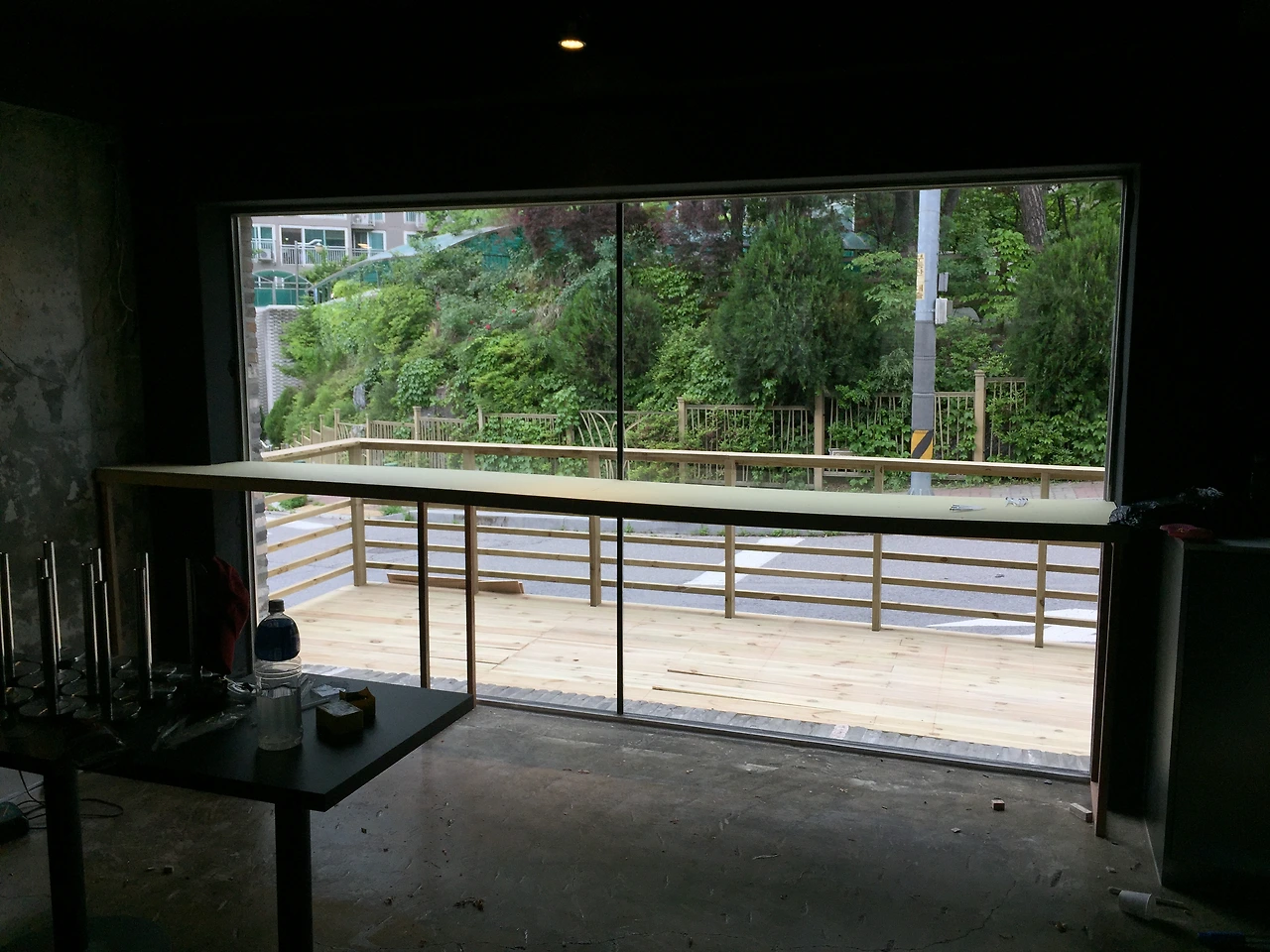 피자집 인테리어 중 데크, 바테이블, 스윙도어(카우보이문)를 맡았다.