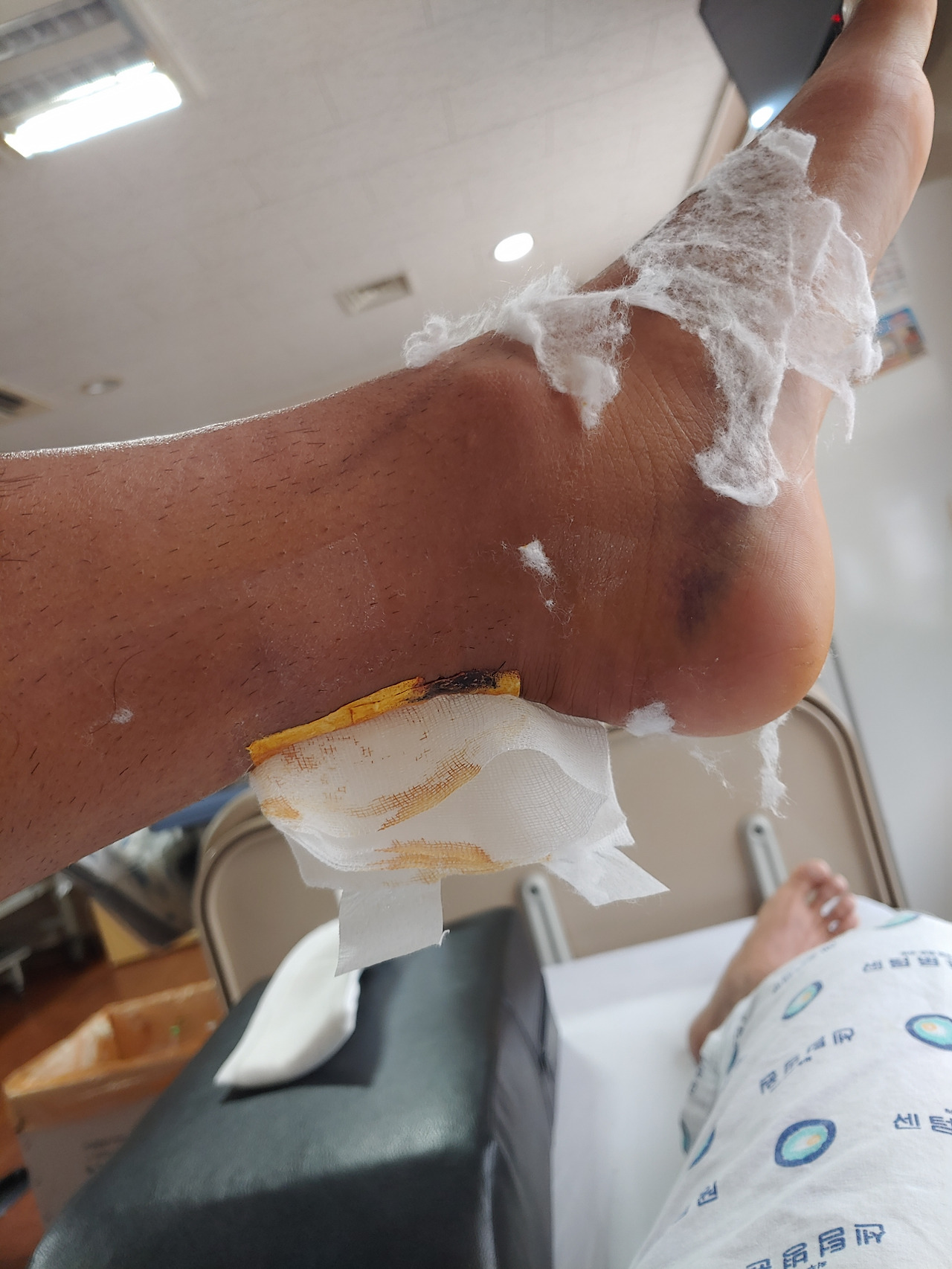 발목과 뒤꿈치 통증 등 통깁스가 너무 불편해서 반깁스로 다시 바꿨다. 수술 부위 부기 때문인 듯하다.