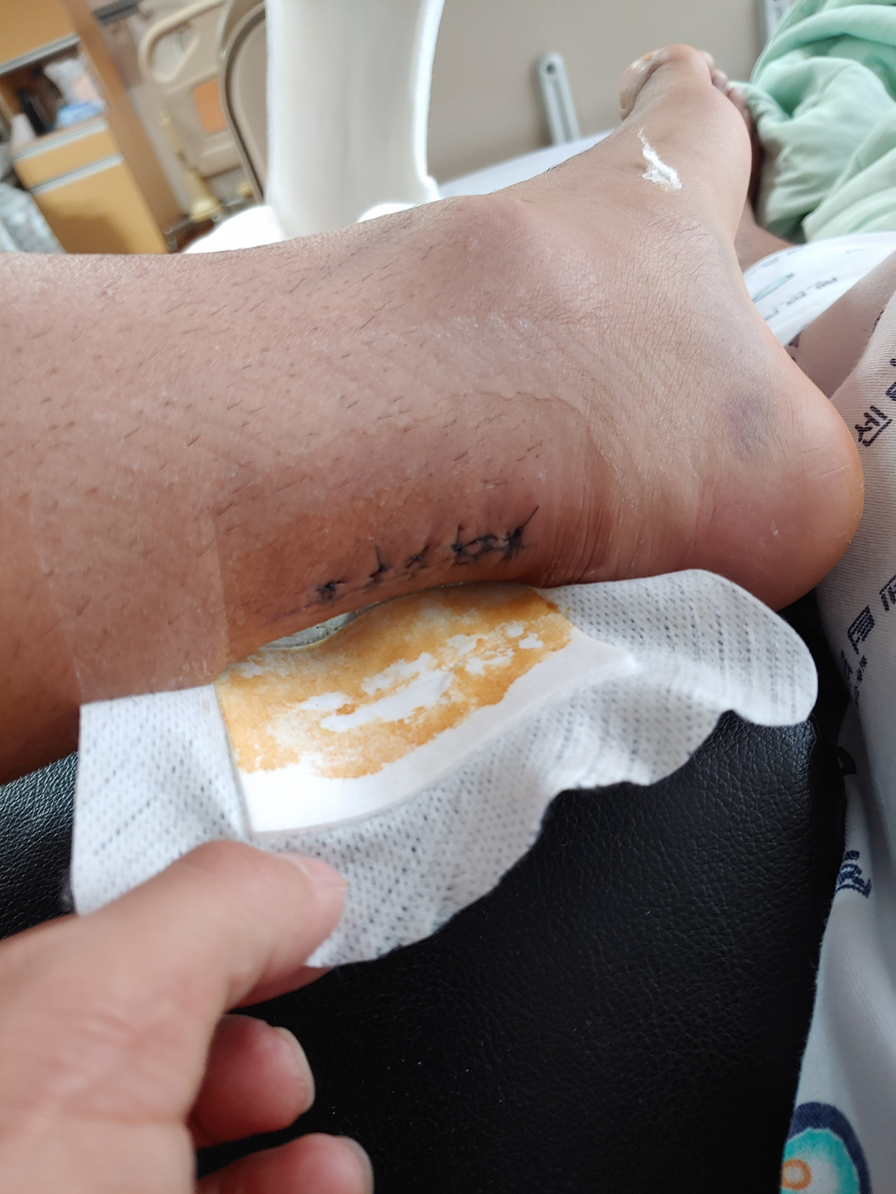 침상에서 휠체어로 이동 중 낙상하며 수술한 발을 디뎌버렸다. 두둑 소리와 함께 1분간 통증을 느꼈다. 하지만 주말이라 의사 진료가 어려워 월요일 회진 시 얘기하기로 했다. 수시로 냉찜질 중이다.