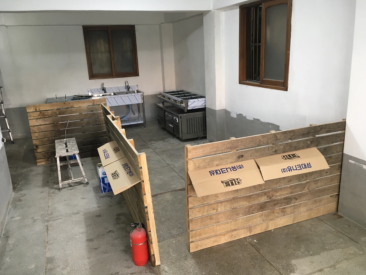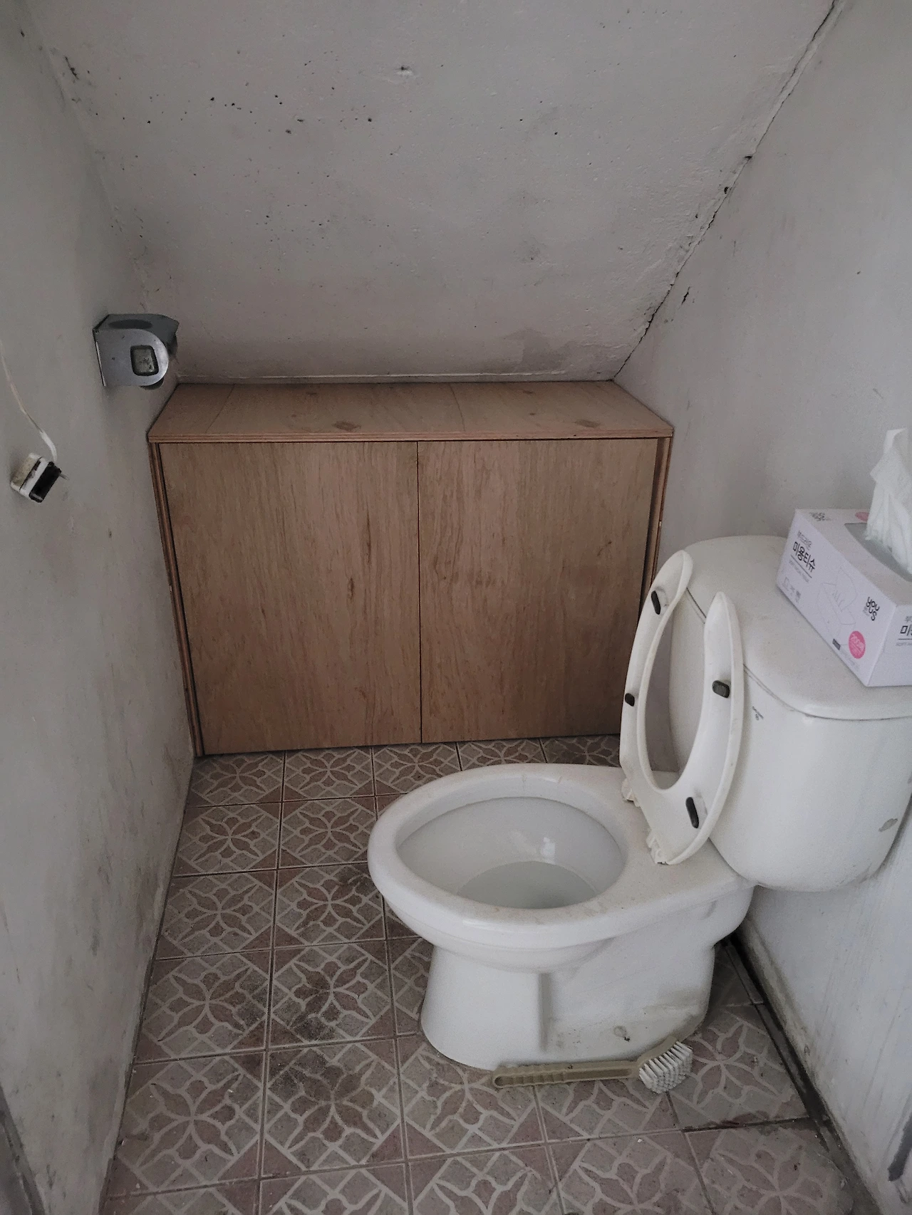 답 안 나왔던 화장실 안. 칸막이 떼어버리고 안쪽 정화조 앞으로 문짝 달아서 가리니까 이제 좀 살겠음