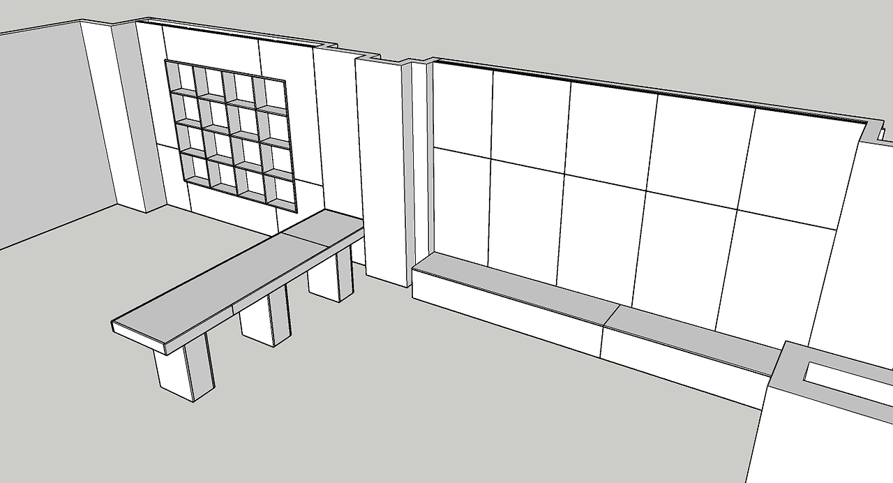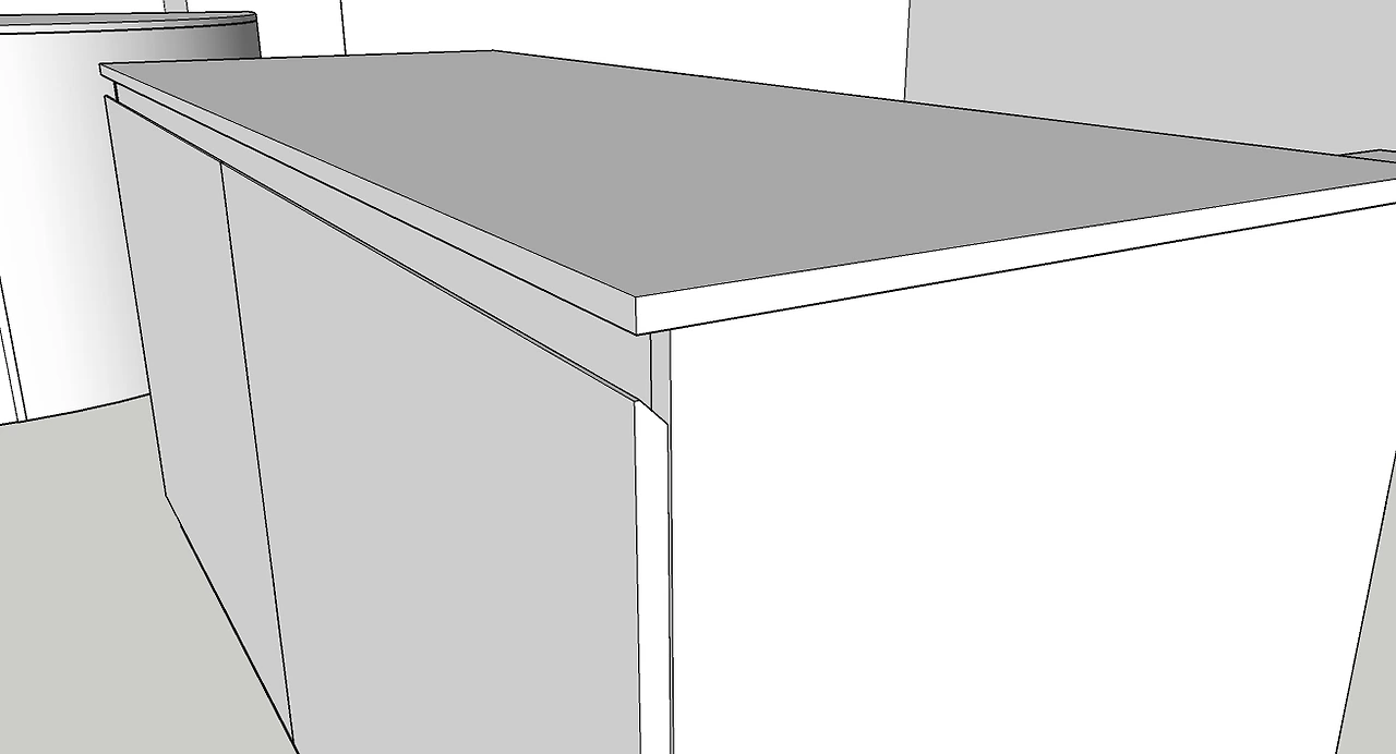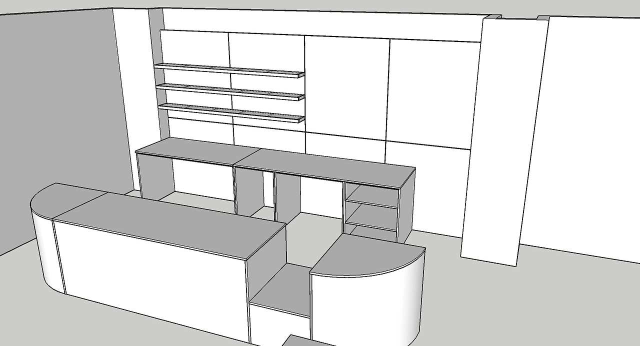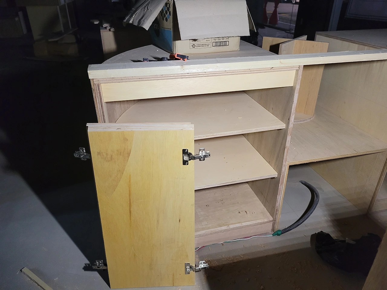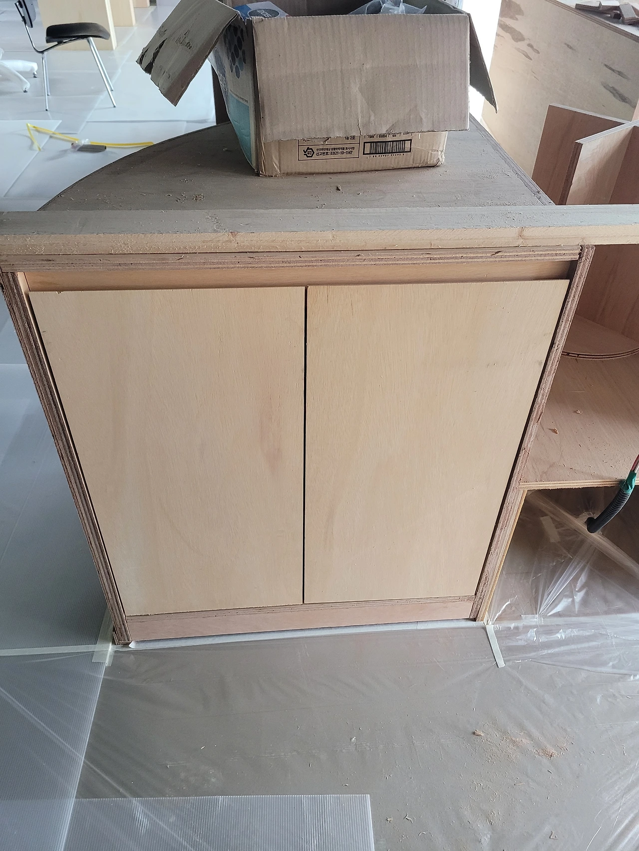 미흡하거나 부족한 부분은 직접 처리해줌. 기둥 감싸주고, 싱크대 문짝 인도어로 수정하고, 라운드장 선반 추가 제작하고 등등
