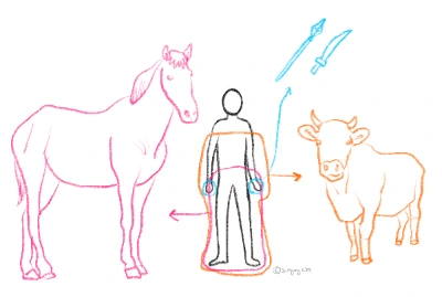 그러고 보면 인간은 우수한 두뇌로 신체의 한계를 넘은 역사가 유구하다. 날카로운 이빨이나 발톱이 없는 대신 뾰족한 사냥도구를 만들었고, 불을 다루어 맹수들을 쫒고 철기를 만들었다. 직접 밭을 가는 대신 소의 힘을 이용하고, 먼 곳을 빠르게 갈 때는 말의 다리를 이용했다. 사람의 신체능력에 한계가 있으니 가축에게 위탁(아웃소싱)한 거다.