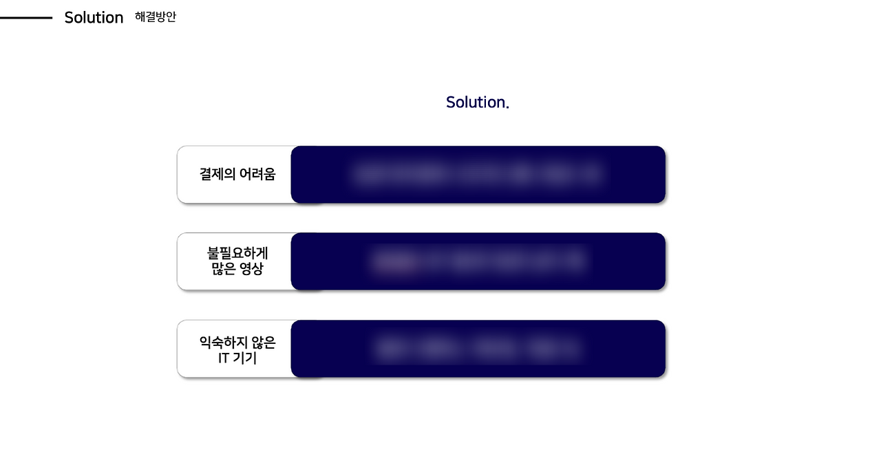 정의한 문제를 어떻게 해결한 것인지 제시하는 페이지이다. 그렇기 때문에 초반에 어떻게 문제정의를 하였는지와 이어지게 설명하는 것이 매우 중요