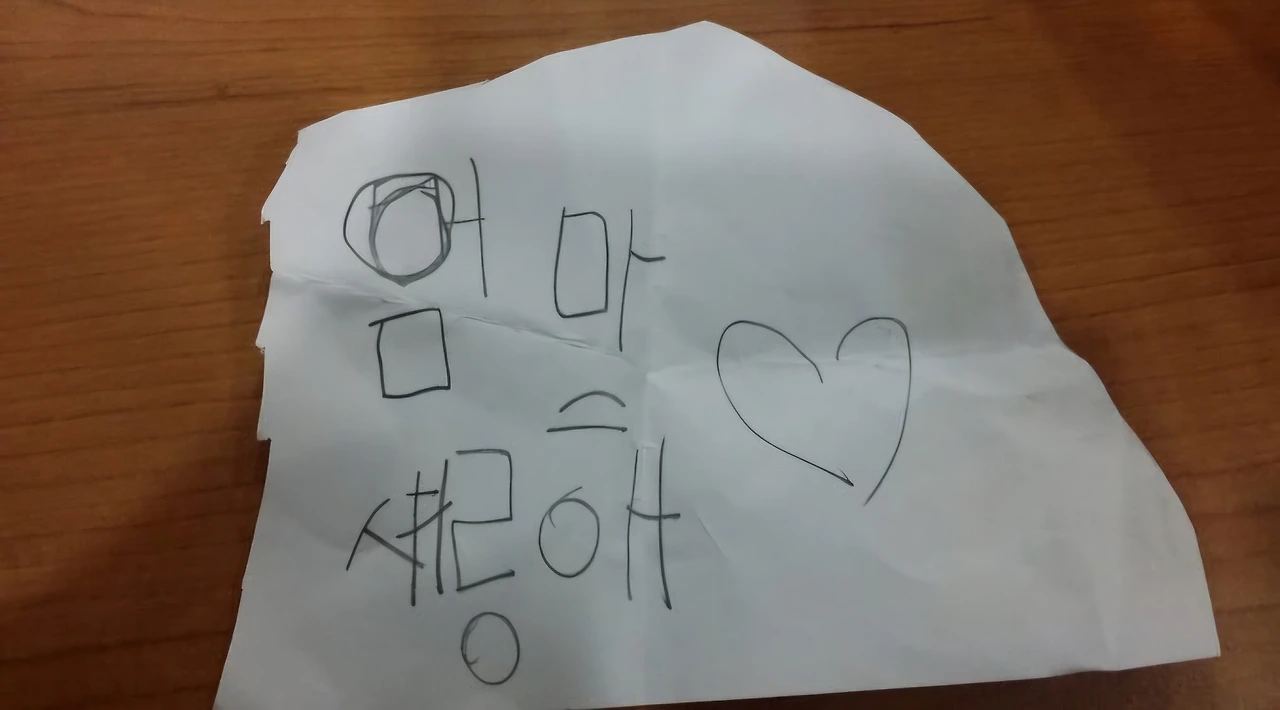 그 위에 삐뚤빼뚤한 글씨가 적혀 있었다.