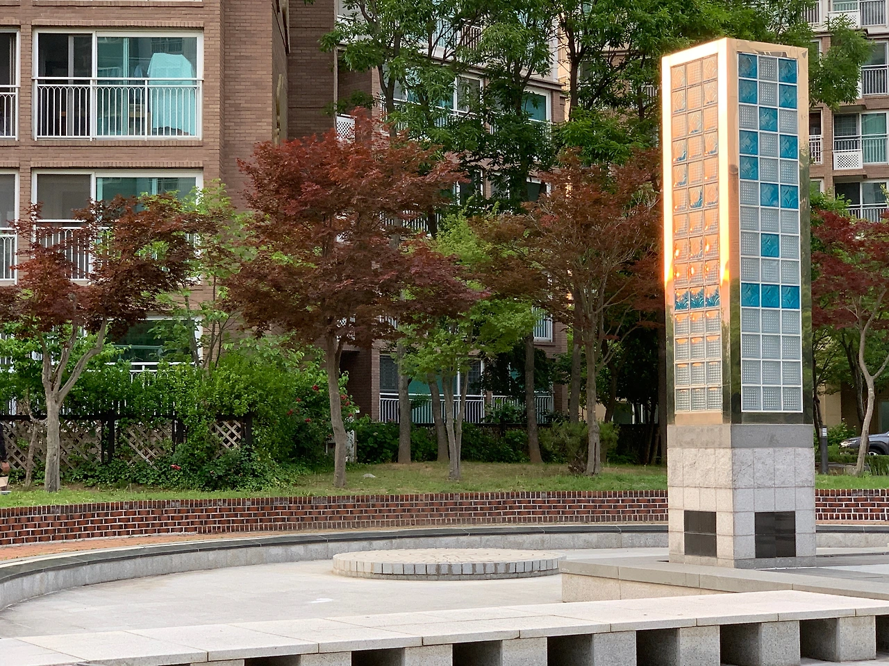 해가 저 멀리 높은 산 위에 걸려있다. 무학산이려나. 조금 있으면 해가 질 거다. 물놀이 시설의 유리기둥이 햇빛을 반사한다. 바람은 불지 않는 듯 조심스럽게 분다.