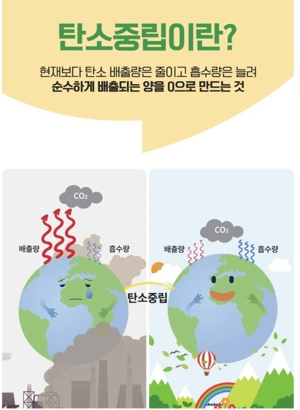 그 대응방안의 하나인 탄소중립사회가 인류의 미래를 보전하는 새로운 화두가 된지 오래다. 그중 기본이 되는 것은 에너지 소비량에 관한 것이다. 우리나라의 산업구조의 중심은 제조업이다. 가장 대표적인 반도체를 필두로 자동차, 철강이 있으며 조선업종까지 있다. 천문학적인 양의 생산시설을 보유한 이 기업들이 제조활동을 한다면 전력소모가 상당한데 동반 재생에너지를 통한 발전으로는 이 수요를 맞추는 것은 거의 불가능에 가까울 것이고, 탄소배출권을 사오든지 전기를 끌어 오든지 해야한다. 이제 탄소중립은 시대의 사명이되었고 세계가 함께 나아가야할 지향점이며 인류의 생존을 위한 최후의 수단이 되었다. 결국 각자 모두가 탄소 중립 실천을 위해 자연과 인류가 함께 공존 하기 위해 다같이 힘을 합칠 때이다.
