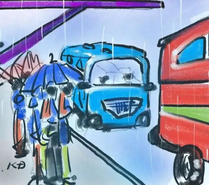 찔꺽 거리는 걸음으로 자동차 경적소리와 어우러진 나뭇잎 들과 몰아치는 비바람의 장단에 박자를 맞추어 술에 취해 비틀거리듯 나도 함께 춤을 춘다. 버스를 탄다. 시원함을 넘어서 차갑게 느껴지는 에어컨 바람을 맞으며 다시 비 세상과 마주 앉았다. 빗방울 떨어지는 광경이 짚으로 꼬아만든 새끼줄처럼 주렁주렁 매달리고 있다.