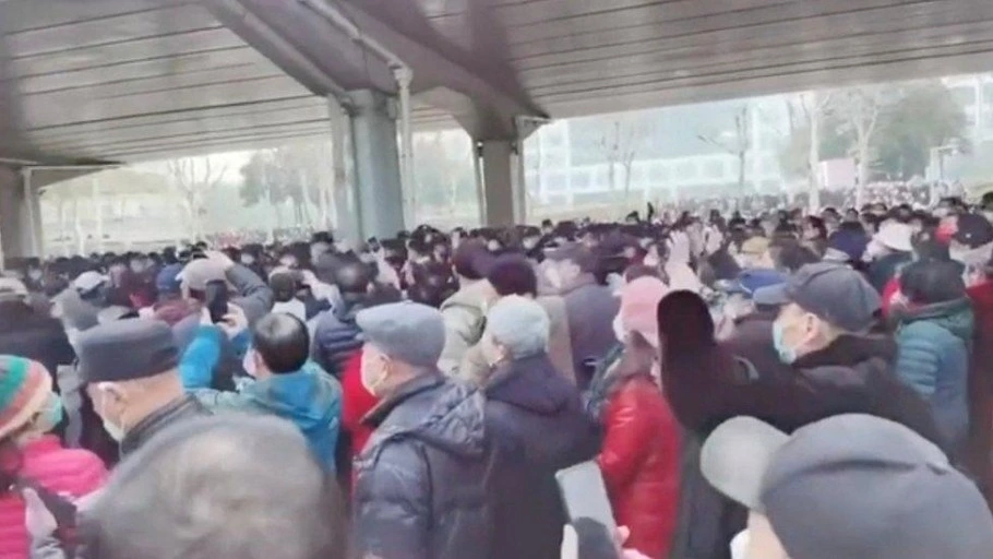 거리 행진을 위해 지나가며 노인 시위대와 청년 시위대가 서로 맞닥뜨린다.