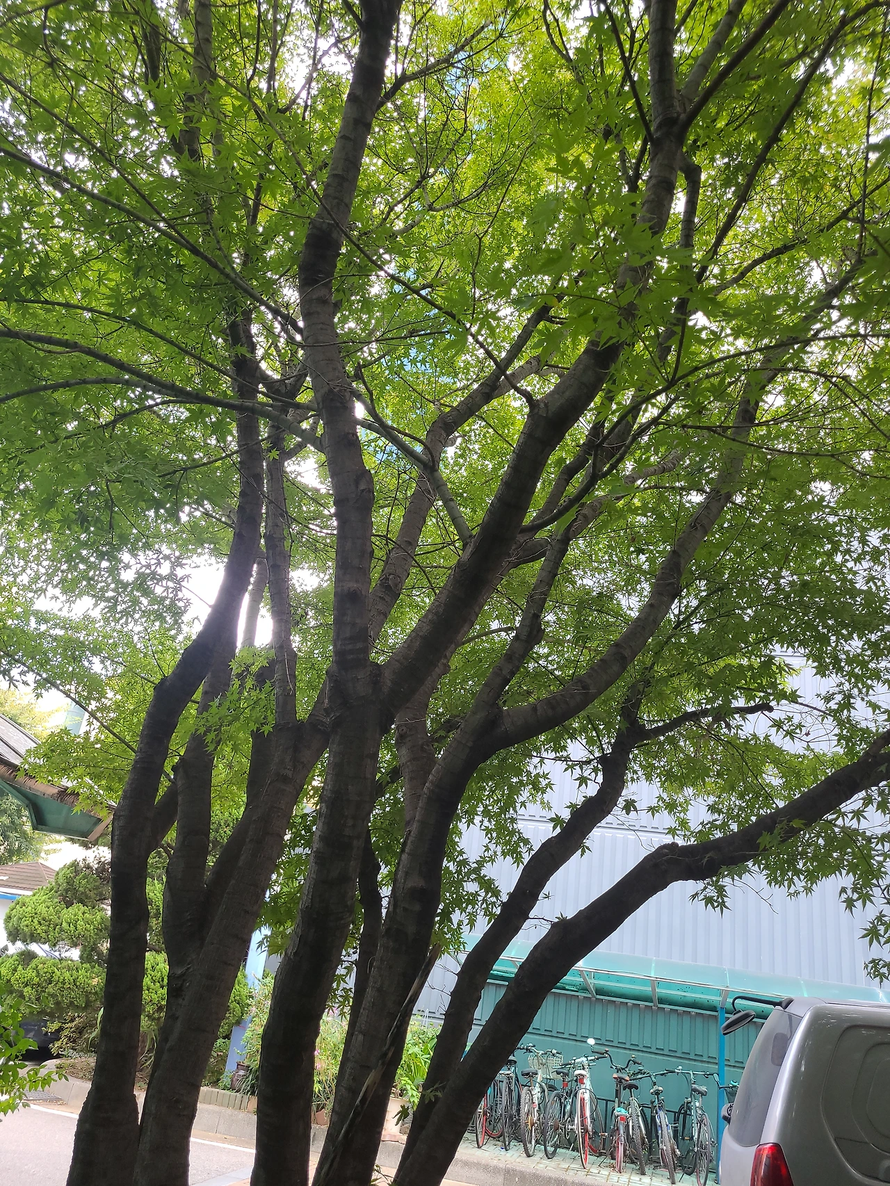 시커멓고 길다란 그림자처럼 늘어진 아파트에선 그 황량함을 작은 초록들이 대적한다. 화단, 묘목, 작은 나무들, 커다란 소나무, 각각의 초록 들은 높은 빌딩 들의 메마름에 생기를 더하고 인간이 만든 조형물 세상에 인간이 꾸며놓은 초록이라도 자연의 살아있음을 증명이라도 하듯 이곳 저곳에 자리를 잡고 소중함을 뽐낸다. 눈맞춤을 한다. 볕을 받은 초록들이 빛을 발하며 저마다의 색을 뽐내고 있다. 짙은 초록, 옅은 초록, 청록의 두꺼운 초록, 투명하리만치 보드라운 연두, 초록과 연두가 섞인 알록달록한 초록, 마치 사람의 얼굴처럼 수십가지 표정을 갖는다. 멀리 떨어진 숲이나 산에서 일부러 찾아가서 느끼는 초록도 좋지만 익숙한 곳에서 느끼는 초록, 특히, 맑은 하늘의 푸르름과 어울려 도시를 정화시키는 초록은 더욱 청량하게 느껴지기 마련이어서 풀 한포기, 나무 한 그루에 더 깊은 감사와 소중함을 느낀다.