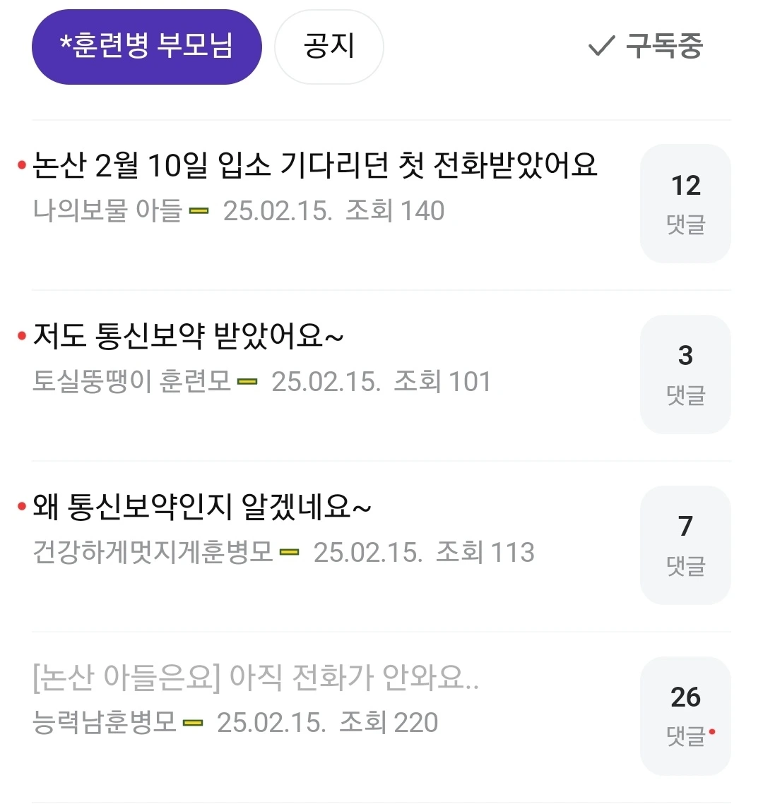 오후에 오려니 하고 방으로 들어가 책을 읽기로 한다. 그런데 아무리 책을 읽어도 활자가 눈에 들어오지 않는다. 마음이 온통 폰으로 가있으니 제대로 읽힐리가 없다. 점심시간이 지났다. 이저 올 시간이 되었으니 또 다시 폰에 집중한다. 공부를 이렇게 집중해서 했으면 지금쯤 못해도 고위직이나 '사'자 붙은 직업을 가졌겠다 생각하니 또 피식 웃음이 나온다. 시간은 더디게 흐르고 전화는 여전히 요지부동이다. 혹시 수신거부로 해놨나 하고 살펴봐도 아니고 폰에 이상이 있는것도 아니다. 답답한 마음에 군대에간 아들을 둔 부모들이 가입한 온 라인 까페에 들어가본다. 역시나 난리가 났다. 아들에게 전화가 온 집은 싱글벙글하고 전화가 아직 안 온집은 왜 아직 오지 않는건지 아들이 어디 아픈 것은 아닌지 끌탕을 한다. 어떤 부모는 아들 전화로 전화를 걸었더니 꺼져있다는 둥, 사단으로 전화를 해보겠다는 둥 완전히 초상집이다. 나도 기다리는 내내 1초가 10년 같다.