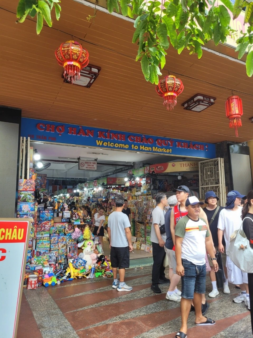 다낭 쇼핑의 대표적 장소로 재래시장인데 1층은 말린 열대과일,망고 젤리 등 먹거리 위주이고 2층은 티셔츠, 아오자이, 크록스, 운동화, 모자 등 잡화를 판매하는데 점포들이 다닥다닥 붙어있고 통로가 좁아 이 더운 여름에 쩌죽는 줄 알았다. 이곳의 재밌는 점은 2층의 모든 메이커가 거의 모조품이고 가격정찰제가 아니라 흥정이 가능하다는 것이다.