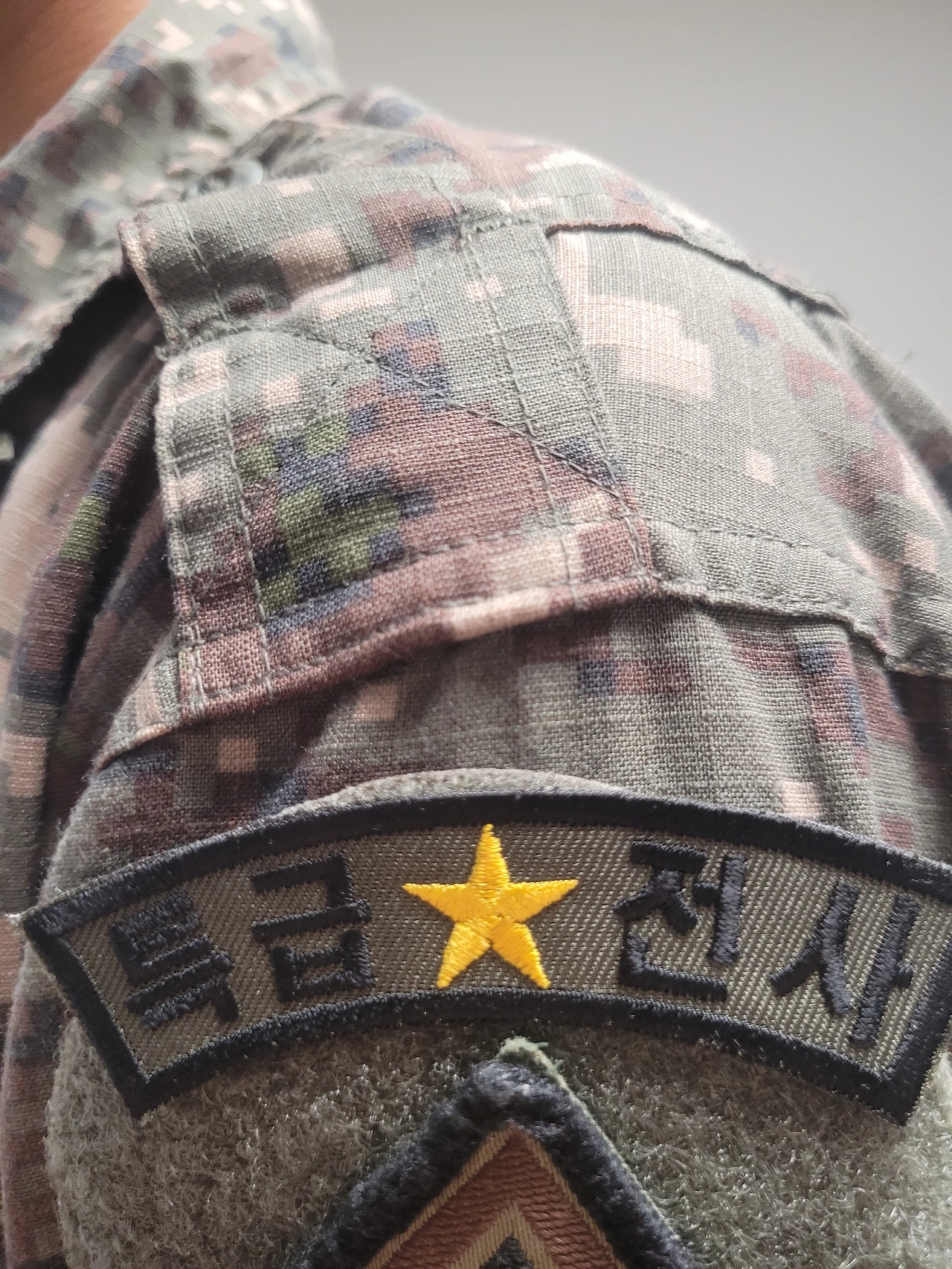 얼마전 체력 테스트에 통과를 하지 못하면 진급이 안된다고 하는 진급누락제도가 발표되어 군대에 보낸것도 억울한데 취사병처럼 체력 훈련을 할 시간적 여유가 없거나 과체중, 또는 신체검사 3급으로 현역판정을 받아 입대한 병사, 전방 경계근무에 투입되는 병는 출발부터 공평하지 않다며 부모님중 한분이 국민신문고에 올린 것을 계기로 부모들의 항의가 거세지자 백지화된 적이 있었다. 나 또한 아들녀석이 군에 가면 어떻게 잘 지낼 수 있을지 폐급이나 면해야할텐데 걱정되어 헬스장 다니면서 체력 운동을 하라고 권해 입대 전 헬스장도 다녔고 꾸준히 운동을 했던 덕분에 기초체력을 다지고 입대시켰지만 사격까지도 통과하다니 대단 하다. 군복 가슴에 그리고 어깨밑에 특급전사 패치를 붙였다. 한층 폼이 나는 것이 씩씩이 일병이다.