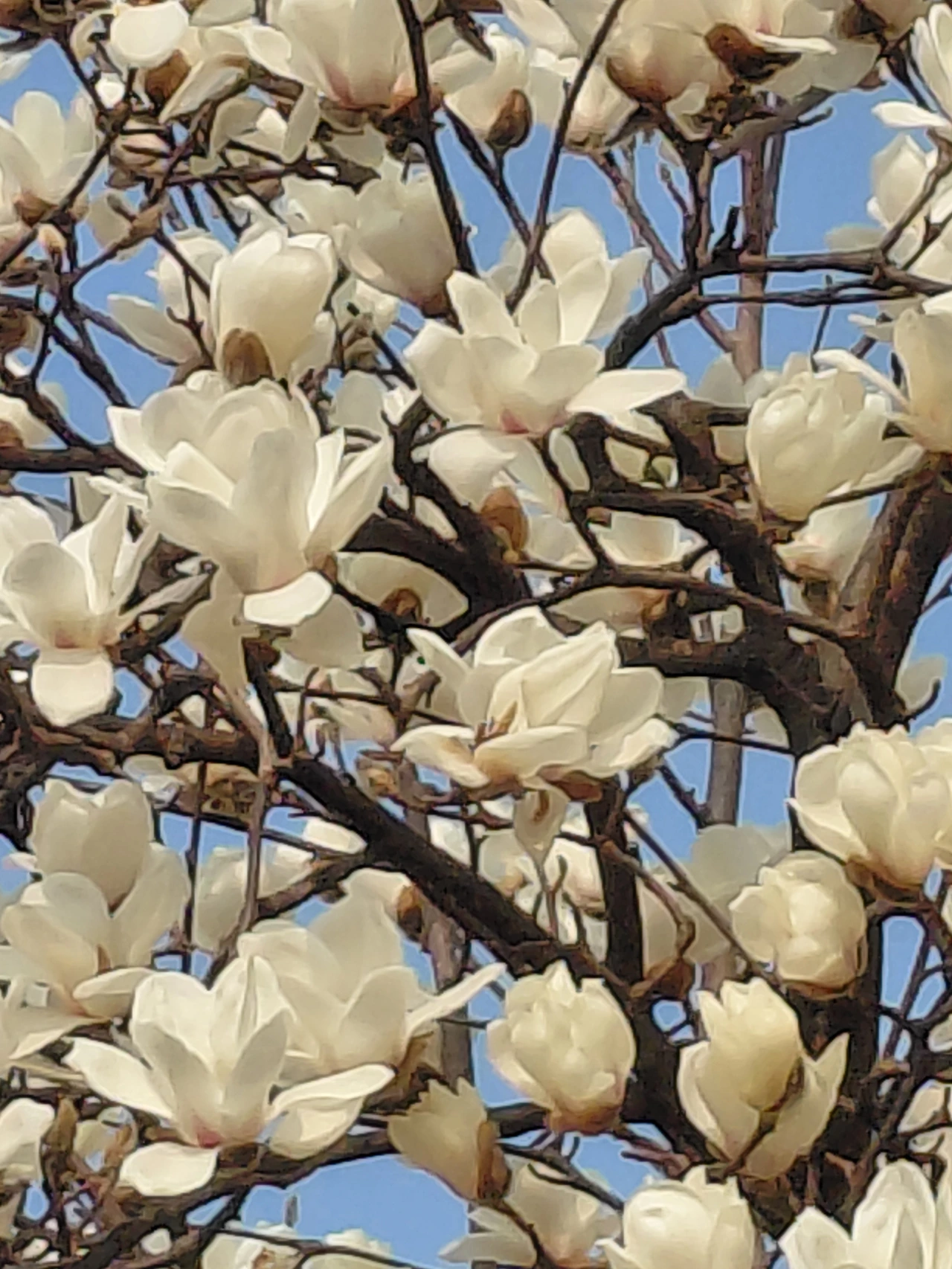 목련꽃 나무 아래서. 목련꽃을 바라본다. 파랁하늘을 배경으로 흰색 꽃들이 너울거리고 어머니의 얼굴이 어른거린다. 마치 지기전에 실컷 보고 가라는 듯 은은한 잔잔한 바람에 너울거리고 어머니의 향기가 가슴에 스민다.