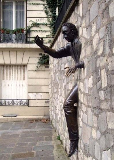 부자들의 물건을 훔치고 의적으로 칭송받다가 스스로 감옥에 갇혔고 다시 탈출하여 유유자적 살고 있다. 하루는 길을 가다가 금발의 아름다운 여인을 만나 사랑에 빠졌는데 그녀는 유부녀였고 그녀의 남편은 질투심이 강해 그녀를 집안에만 가두어 놓는다. 어쩔 수 없이 늦은 밤 몰래 그녀의 남편이 없는 사이 그녀와 뜨거운 사랑을 나누고 새벽에 벽을 통과하여 나오곤 했다. 어느날 두통으로 처방받은 약을 먹고 그녀의 집에서 뜨겁게 사랑을 나누고 여느날처럼 벽을 통해 나오려는데 갑자기 몸에 이상한 기운이 돌면서 그냥 벽에 갇혀 버리고 만다. 의사가 체력을 소진하라고 처방해 준 약을 두통약으로 잘못 알고 먹었고, 밤새도록 체력을 소진한 결과 그 능력을 고쳐준 것이다. 벽으로 드나느는 남자는 그냥 벽안에 갇혀 신세를 한탄하는 벽이 되고 말았다.