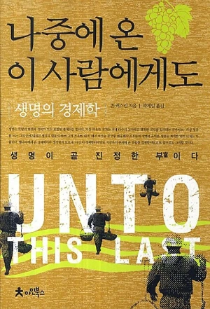그럼에도 불구하고 돈이나 시간을 적게 들이는 ‘경제’라는 단어에서 생명과 인간의 존엄성을 중요시 여긴다는 것이 어불성설은 아니라고 말하고 싶다. 러스킨이 독자들에게 바라는 점은 절대적 정의를 이루라는 것이 아니라 일상생활에서 필요한 정도의 정의를 이루라는 것이기 때문이다. 인간만의 고유 특성인 옳고 그름의 법칙에 따라 살기를 요청하고 있는 것이다.