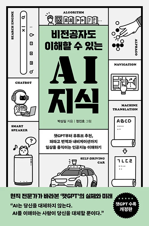책에서는 알파고부터 자율주행(테슬라), 검색엔진(구글), 스마트 스피커(시리), 기계번역(파파고), 챗봇(챗GPT), 내비게이션(티맵) 추천 알고리즘(유튜브)까지 8가지 주제를 선정해서 설명하고 있다.