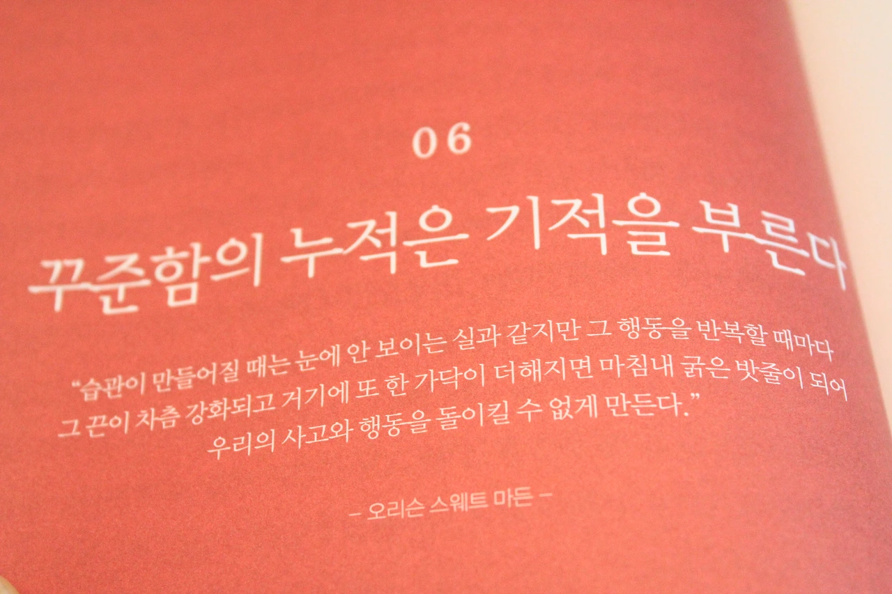 대부분의 사람들이 포기하는 이유는 겉으로 드러나는 성장이 보이지 않기 때문이다. 자신이 노력한 만큼의 성장이 겉으로 드러나지 않기에 원하는 목적지에 도착할 수 있다는 믿음이 점점 사라져간다. 이내 포기하게 되고 이 악순환을 반복하게 된다.