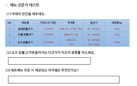 직원 교육 후 아래와 같이 테스트를 보면 더욱 좋다.