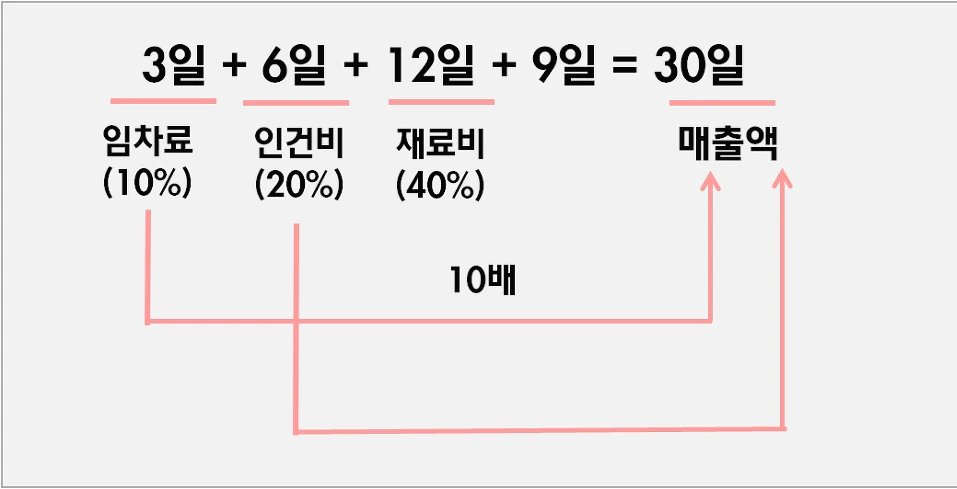 이를 전문 용어로 '프라임 코스트(Prime Cost)'라고 하며 재료비와 인건비를 더한 것이 총매출의 65%를 넘지 않게 관리해야 한다는 게 핵심입니다.