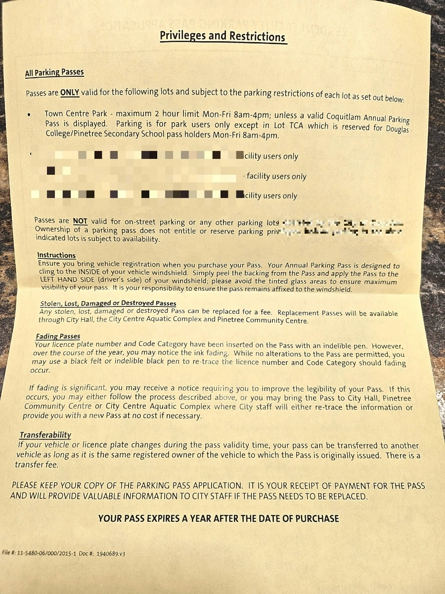 집 근처 레크리에이션 센터(Rec Centre)에도 주차비가 있으며, 우리는 결국 1년 회원권을 등록했다.
