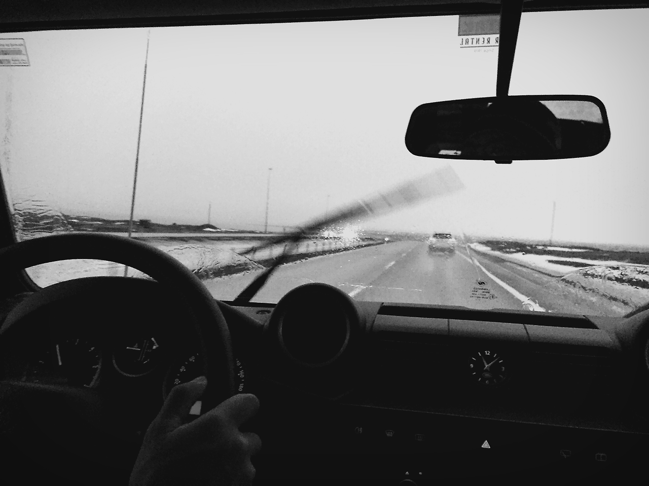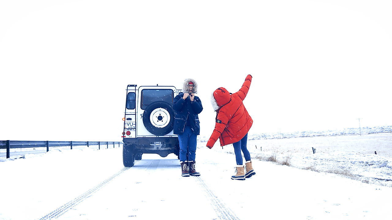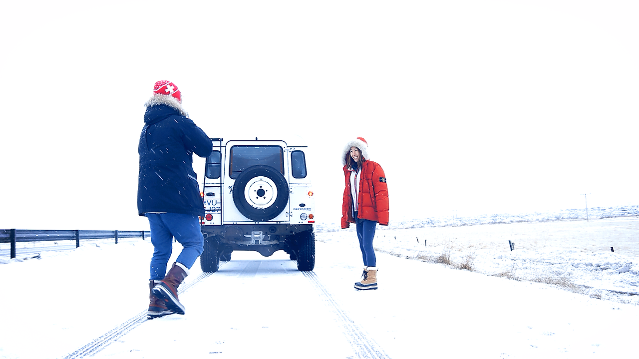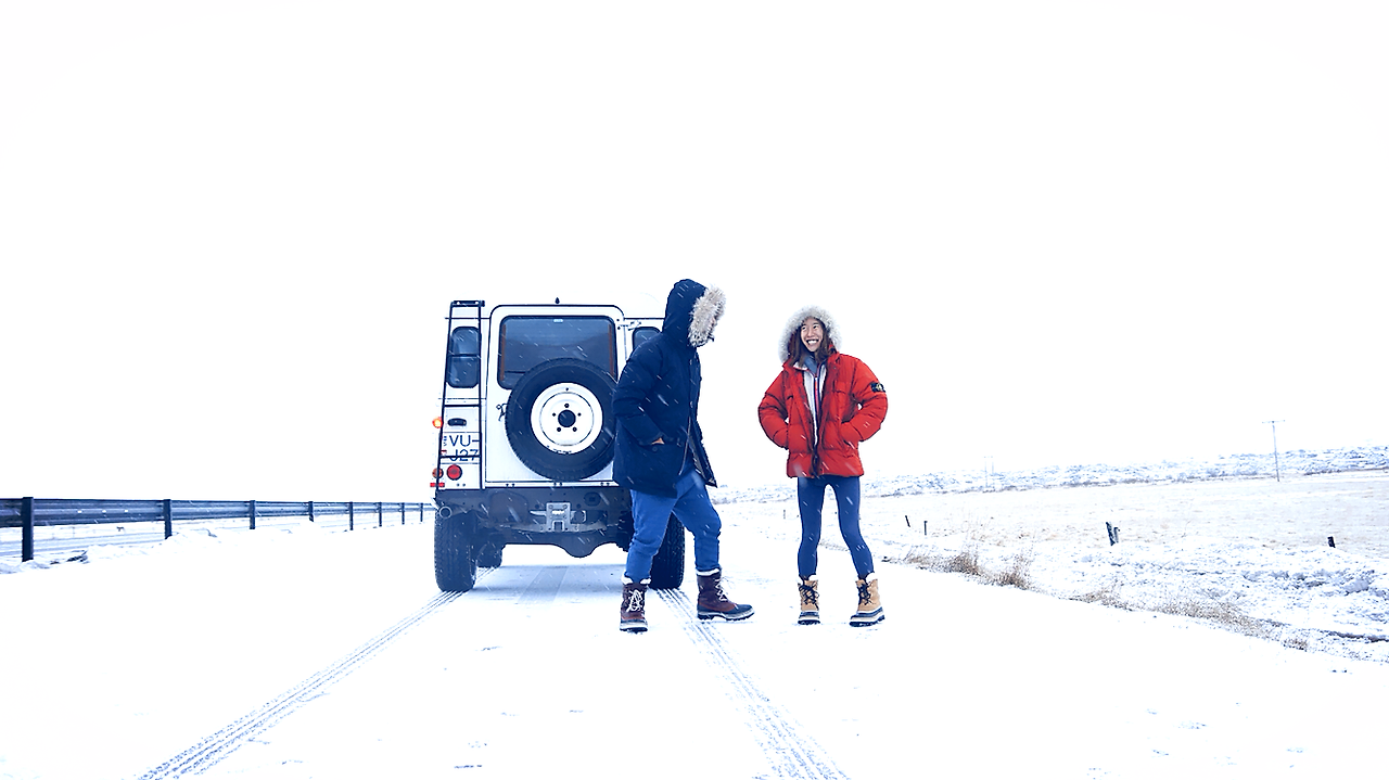 현지 물가도 좀 알아볼겸 레이캬비크의 마트를 찍고 출발했다. 공항근처라 제설은 잘 되어 있어 한국에서의 운전환경과 크게 다르지 않았고, 처음운전하는 디펜더도 금방 익숙해졌다. 1999년 감성의 승차감에 익숙해지는건 조금 뒤로 미뤄야겠다. 밖엔 눈과 비가 섞여 계속 내려왔다. 아직은 궂은 날씨도 낭만으로 녹여버릴 수 있다. 정말 조금 달려보니 눈은 계속 내리지만 구름이 좀 걷혔는지 날이 밝아졌고 훨씬 풍경이 좋아졌다. 기분이 날아갈것만 같다.