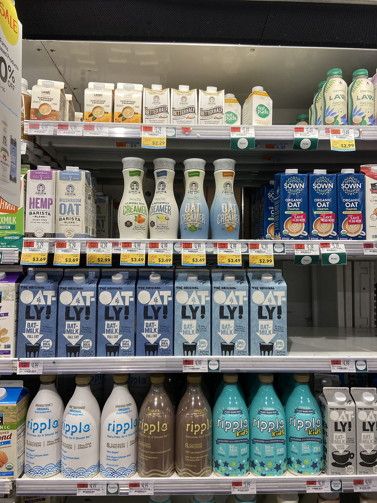 아이가 마실 skim milk (지방 성분을 제거한 일반 우유), 그리고 내가 먹을 Oat Milk(오트 밀크).