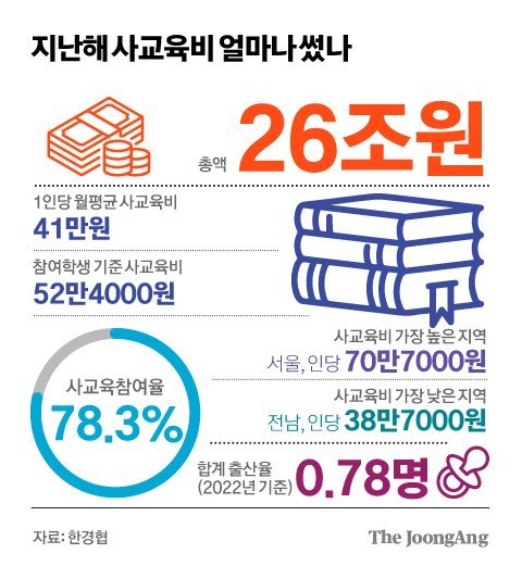 일방적으로 부모의 의견이나 가이드를 강요하는 이전 세대의 부모보다는 자녀들과 수평적인 관계에서 다양한 의견을 나누는 부모가 되기 위해 노력하는 부모님들의 모습을 많이 볼 수 있었고 아이의 시선과 감정을 위주로 한 육아 프로그램의 종류와 내용이 다변화하고 있는 것이 현재의 한국의 육아방식인 듯합니다. 하지만, 얼마 전 발표된 2023년 자료에 등장한 역사상 최대의 사교육비 26조(OECD 국가 중 GDP 대비 비율이 가장 높음)에 대한 내용을 보고, 이런 상황이라면 어쩔 수 없이 아직 현재의 한국은 타이거맘으로 대변되는 전통적인 아시안의 양육방식이 대부분일 수밖에 없겠다는 가늠을 해볼 수 있었죠.
