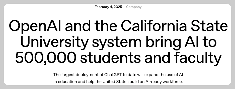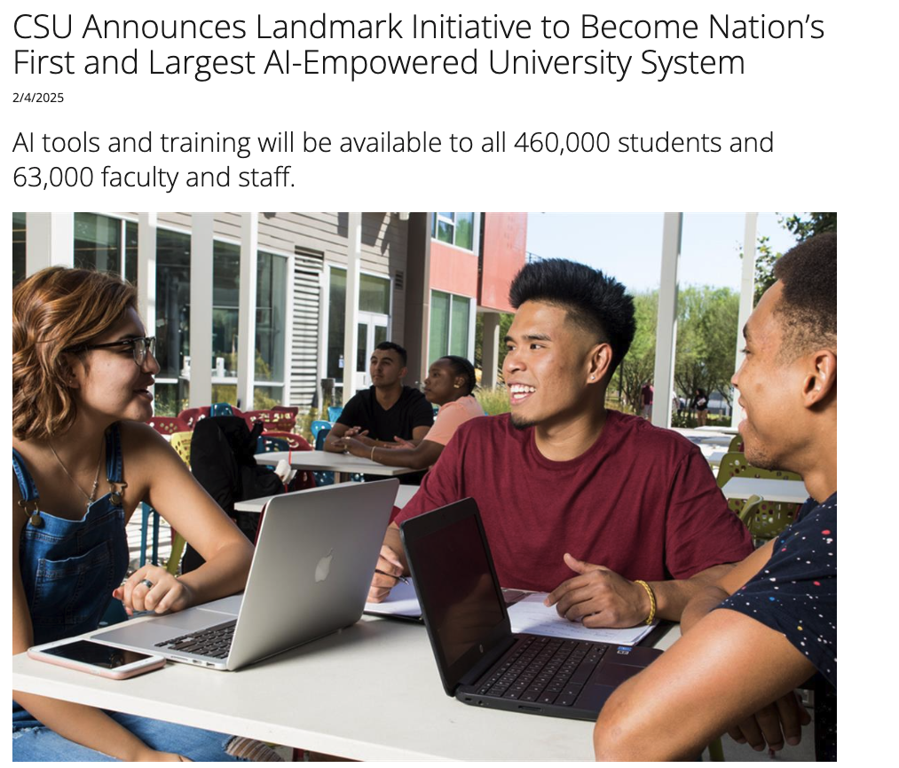 캘리포니아 주립대(23개 캠퍼스, 46만 명 학생)를 시작으로 모든 대학생에게 AI 비서를 제공하고,
