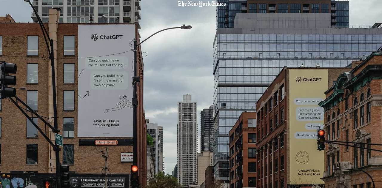 뉴욕타임즈에 게재된 뉴욕시내의 Chat GPT 광고이미지