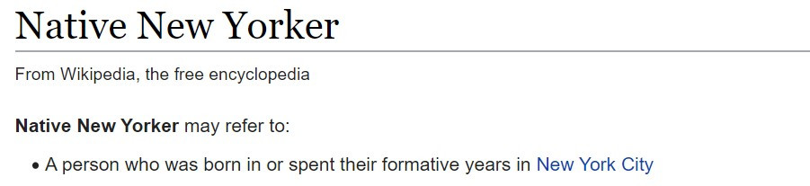 그래서 반대로 뉴욕에서 태어나고 자란 사람들을 지칭하는 별도의 단어 역시 존재한다.