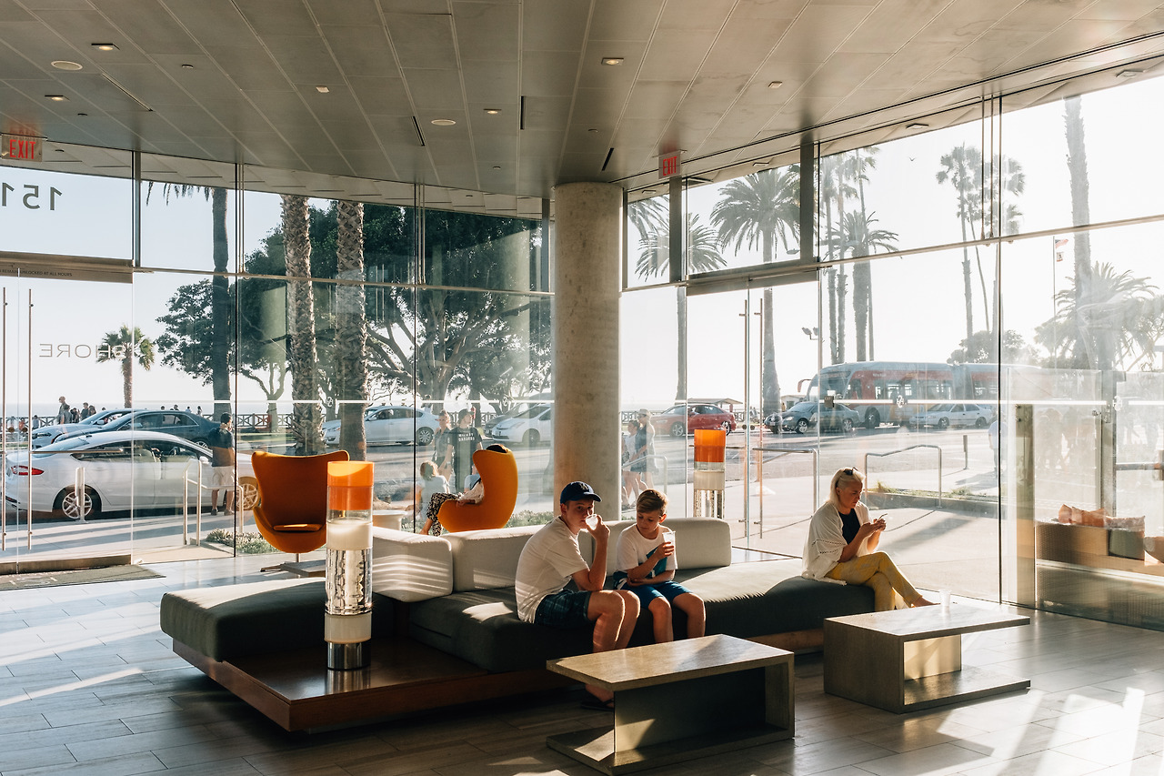 처음 도착하자마자 묵었던 쇼어 호텔은 산타 모니카 해변 바로 앞에 있는 작은 부티끄 호텔로 깔끔한 외관과 아기자기한 디자인이 무척이나 맘에 드는 곳이었습니다. 어린아이들과 함께 지내기엔 다소 편의성이 떨어지긴 했지만, 오후의 느린 햇살이 통유리를 통해 길게 드리워지는 로비 전경을 바라보는데 순간 아! 이런 게 바로 캘리포니아지! 하는 생각이 절로 들더군요. 하지만 이런 감상도 잠시, 이곳에서 소송에 민감한 미국 특유의 liability(라이빌러티) 때문에 고생 아닌 고생을 하게 되면서 '이번 여행, 정신 바짝 차리지 않으면 안 되겠다' 하는 생각이 들더군요.