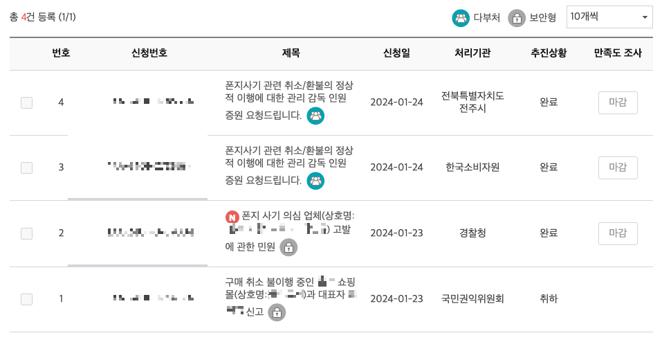 아뿔싸. 쇼핑몰에 올라와있는 글들이 전부 2022년 무렵이었다. 지도로 업체를 찾아보니 웬 시골 농가가 나왔다. 부랴부랴 전화를 해봤지만 회사 번호는 없는 번호라고 나오고, 대표로 추정되는 사람의 휴대폰은 울리긴 하지만 받지 않았다. 아, 또 시작이네 이거. PTSD가 올라와서 울화통이 터졌지만, 한편 그 덕에 어떻게 대처해야 할지 매뉴얼을 너무도 잘 알고 있던 나는 바로 카드회사에 전화를 걸어 분쟁 접수를 했다. 그렇게 당해놓고서도, 이번에도 나는 할부 구매를 하지 않고 일시불 구매를 해버렸다. 어차피 할부 구매를 했더라도 총액이 30만 원이 넘지 않아 할부철회·항변권 신청은 할 수 없었긴 했지만, 그래도 최소한 에스크로는 했었어야 했는데, 역시나 한 번도 아니고 두 번이나 속은 것에는 '대가리 빠가사리' 같은 나라는 이유가 있었다. 소비자보호원에 전화해 업체의 사업자 등록증 번호를 조회해 폐업 사실을 확인한 후 곧바로 신고하고, 지체 없이 PG사에도 전화를 걸었다.