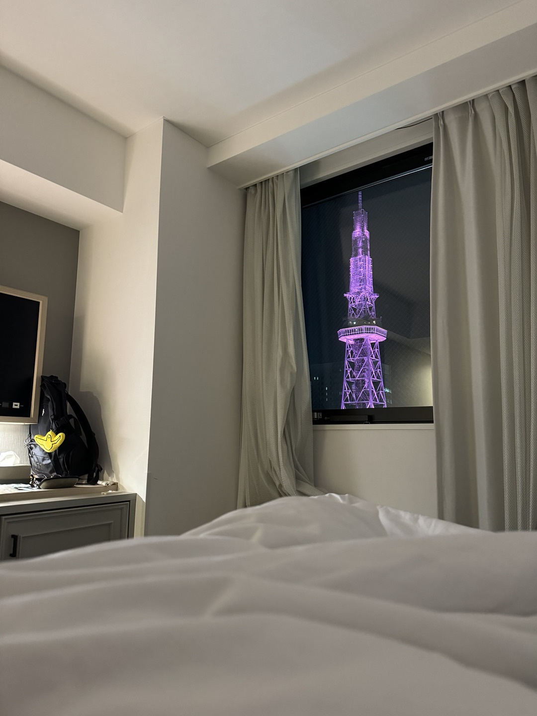 침대에 누워서 훤히 내다보이는 핑크빛의 미라이 타워. 나고야의 랜드마크가 앞으로 3일 동안 내 방 창문을 비춰줄 것이었다. 뜻하지 않게 얻은 호사에 감사한 마음으로 이 긴 여행의 첫날을 마무리하며 잠을 청했다. '아무래도 시작은 조금 고약했지만 나머지 날들은 더 좋은 일과 사건들이 생기지 않을까?'하고 기대하면서 말이다.