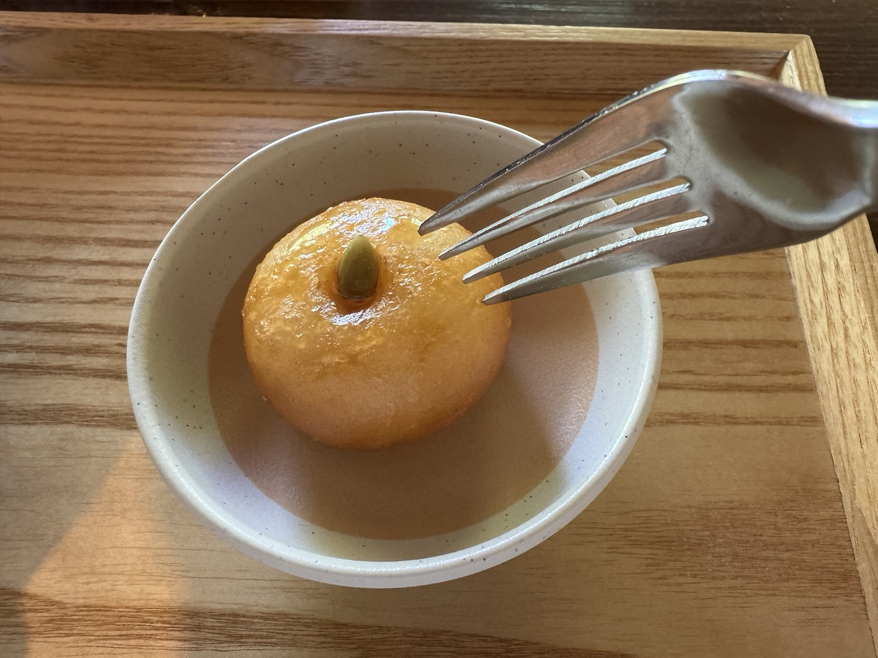 그 맛도 궁금하지만, 또 너무 귀여워서 입에 넣기 전에 포크로 괜시리 콕콕. 괴롭혀본다.